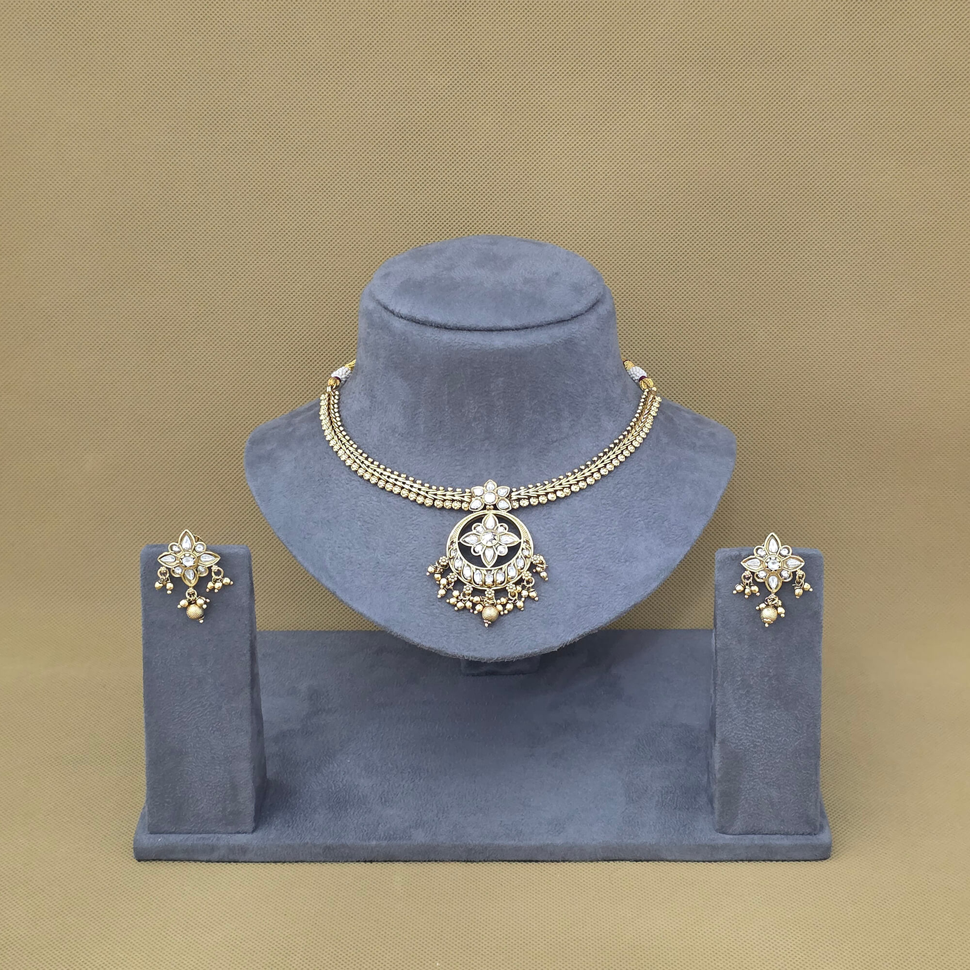 Home / Antique Necklace / antique classic necklace set with matte gold plating