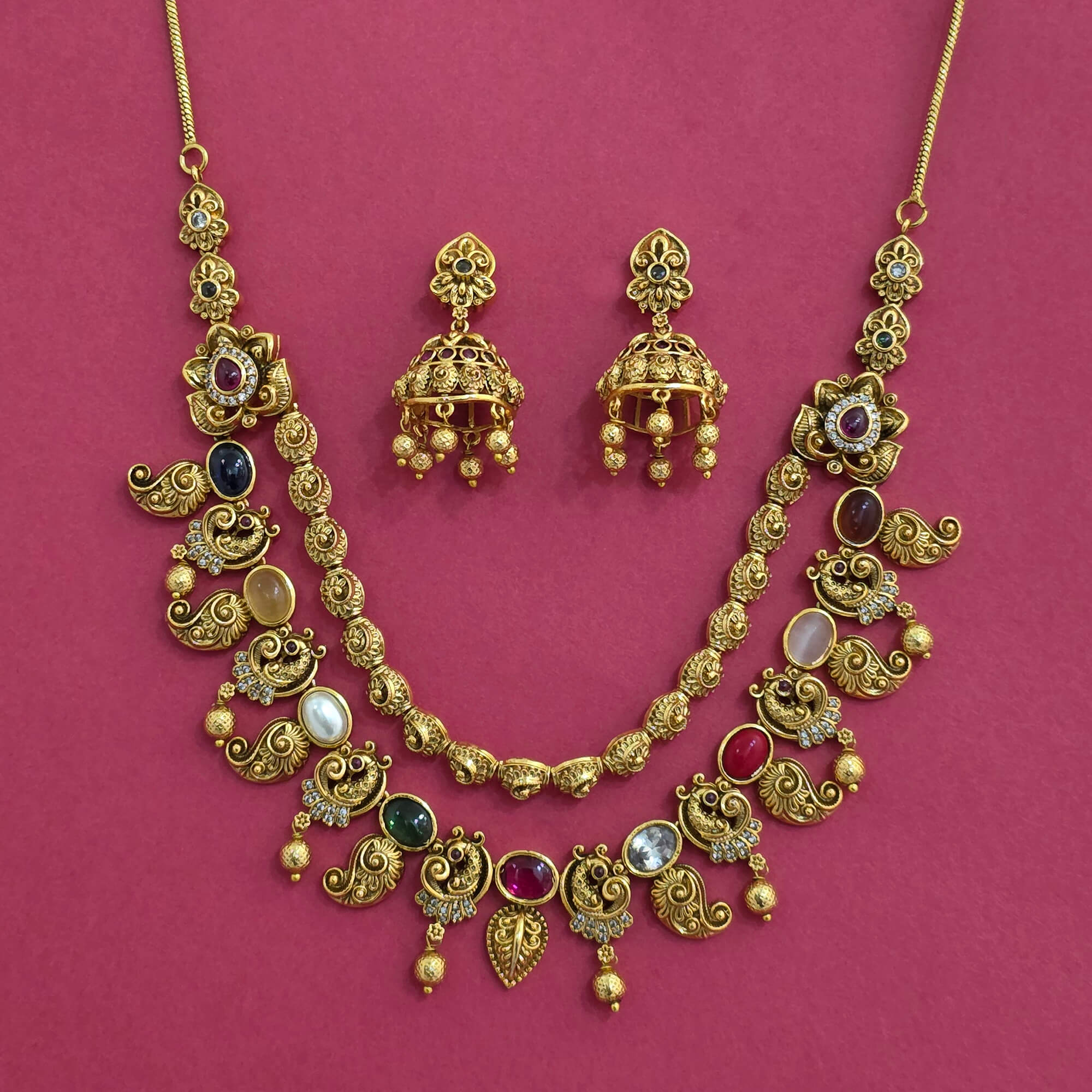 Kanhai Jewels offers an exclusive collection of finest quality crafted Fashion Jewellery in various colors. We make sure that our collection of Antique Classic Necklace Set With Matte Gold Plating are beautiful, elegent & will surely galvanize you, because our products are unique, comfortable, fashion forward & very popular for the rich look. Base Metal of our product is Alloy, i.e Mixing of Copper & Brass. We pack all the products using quality packaging material to ensure safe and secure transportation.