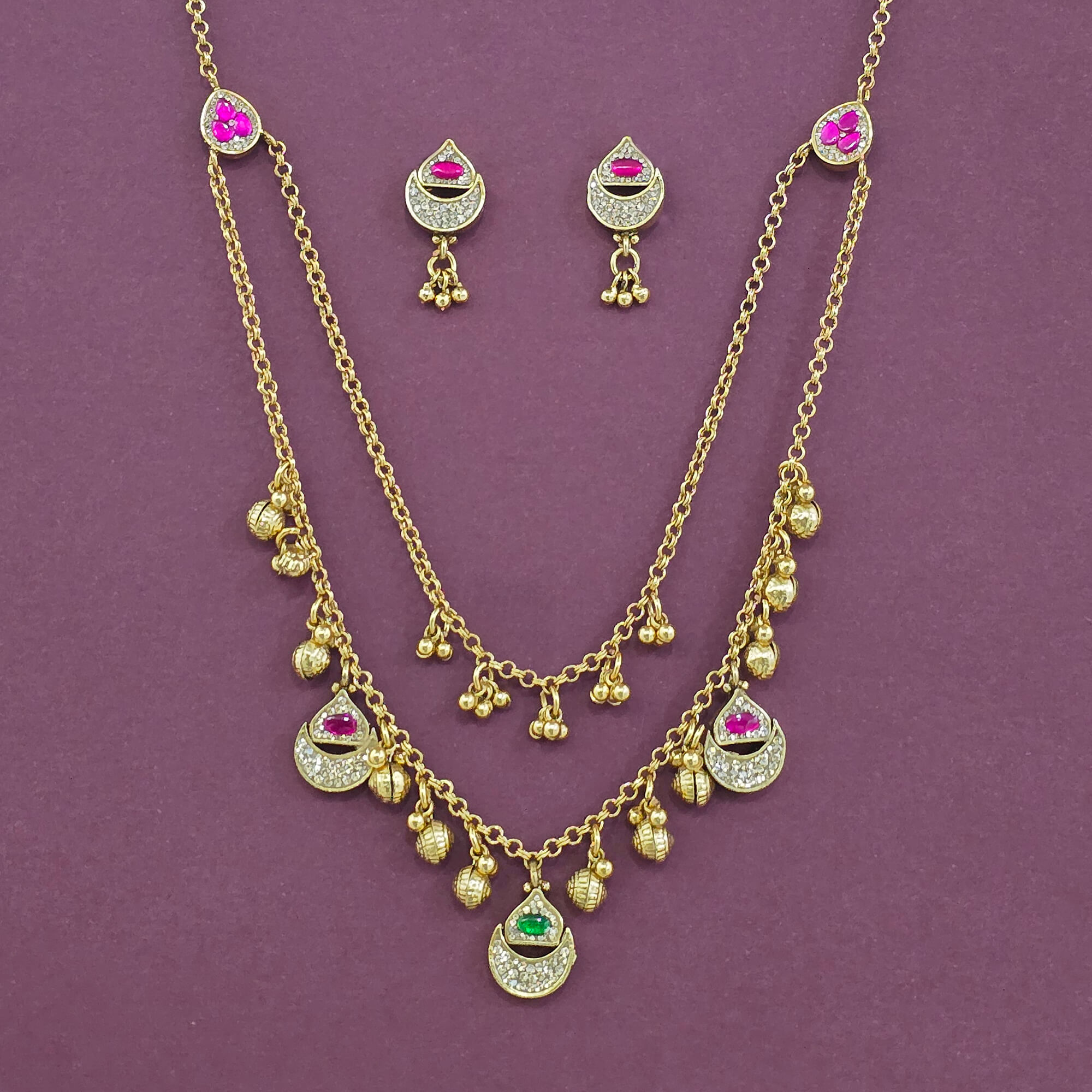 230440 Antique Classic Necklace Set With Matte Gold PlatingNew