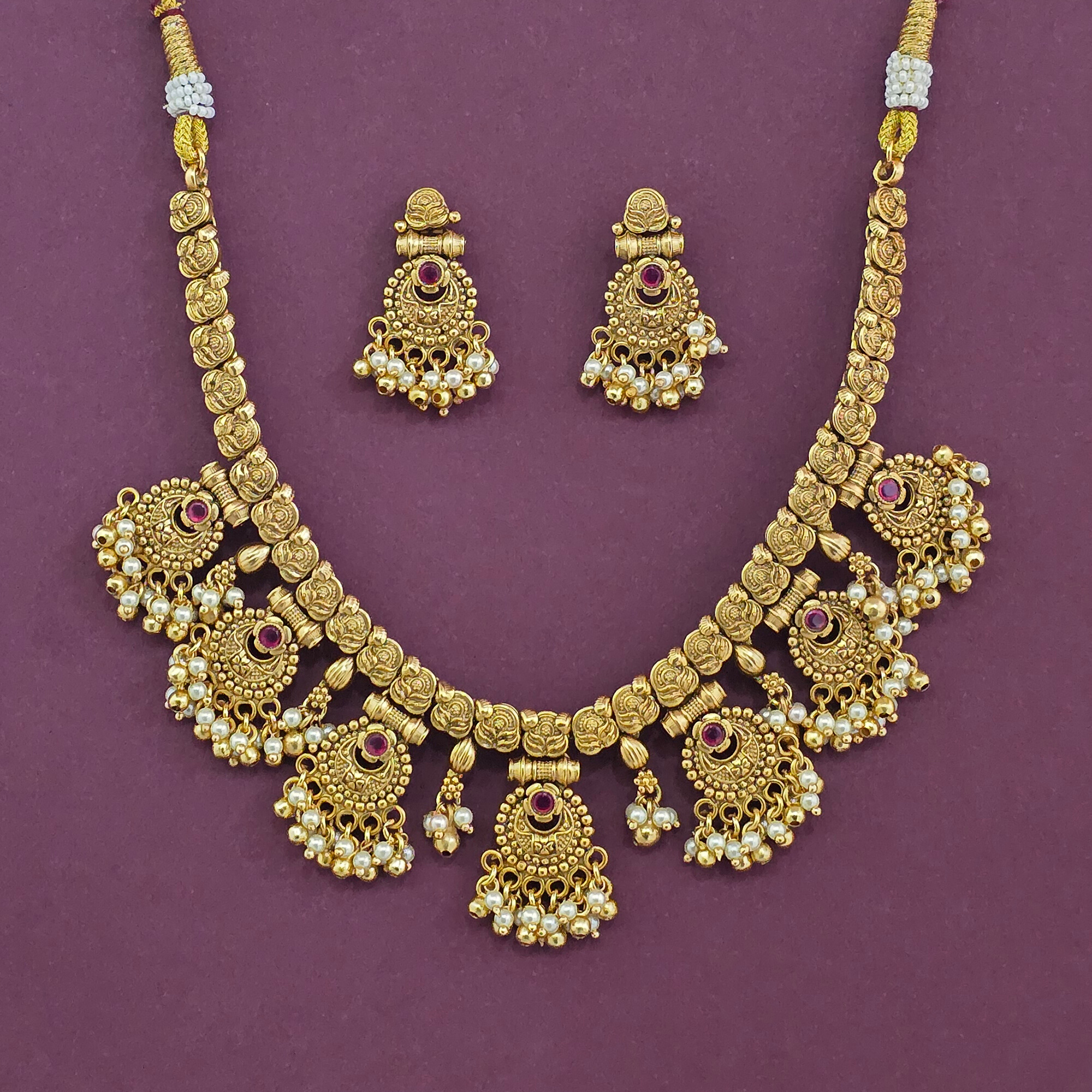 Home / Antique Necklace / antique classic necklace set with matte gold plating