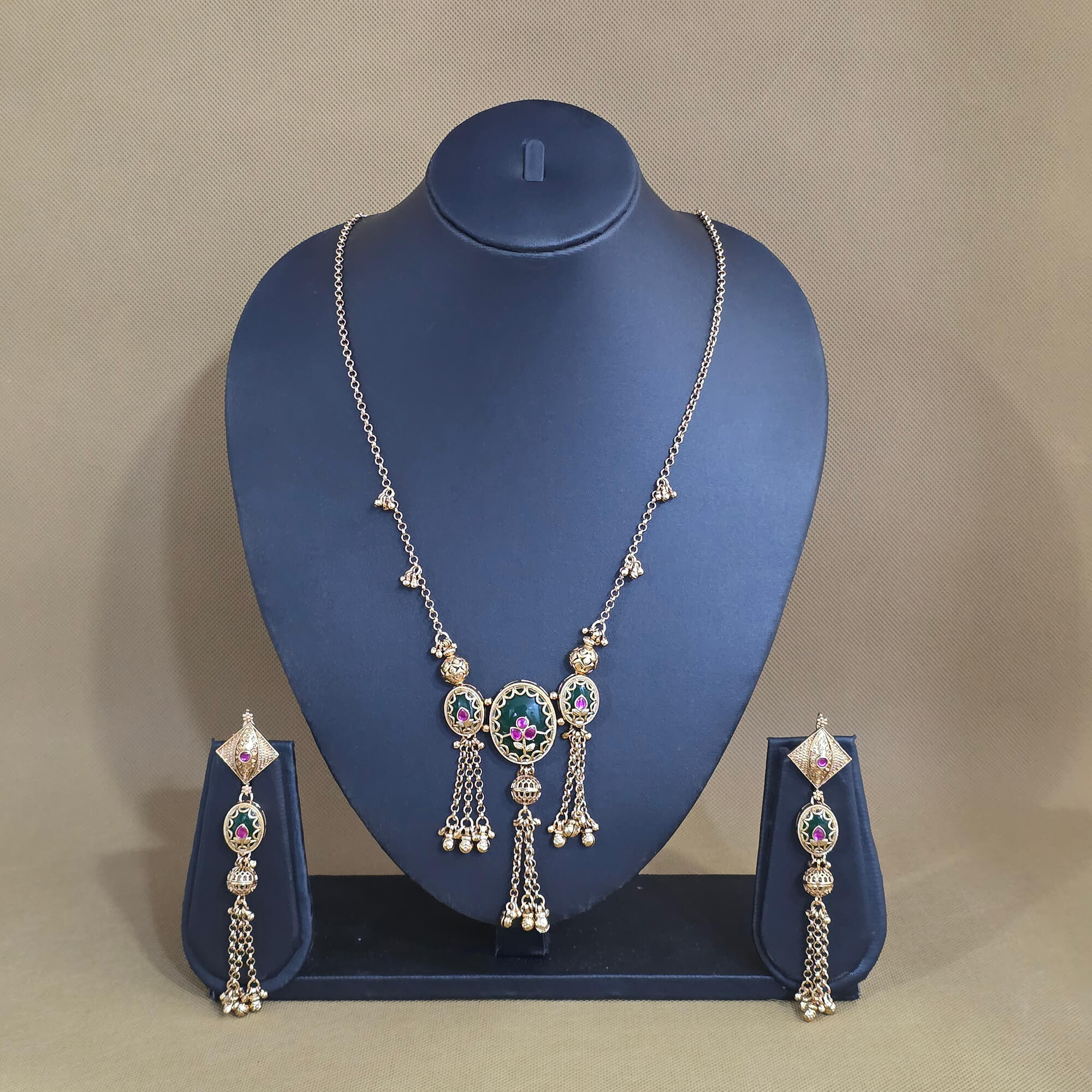 Kanhai Jewels offers an exclusive collection of finest quality crafted Fashion Jewellery in various colors. We make sure that our collection of Antique Classic Pendant Set With Gold Plating are beautiful, elegent & will surely galvanize you, because our products are unique, comfortable, fashion forward & very popular for the rich look. Base Metal of our product is Alloy, i.e Mixing of Copper & Brass. We pack all the products using quality packaging material to ensure safe and secure transportation.
