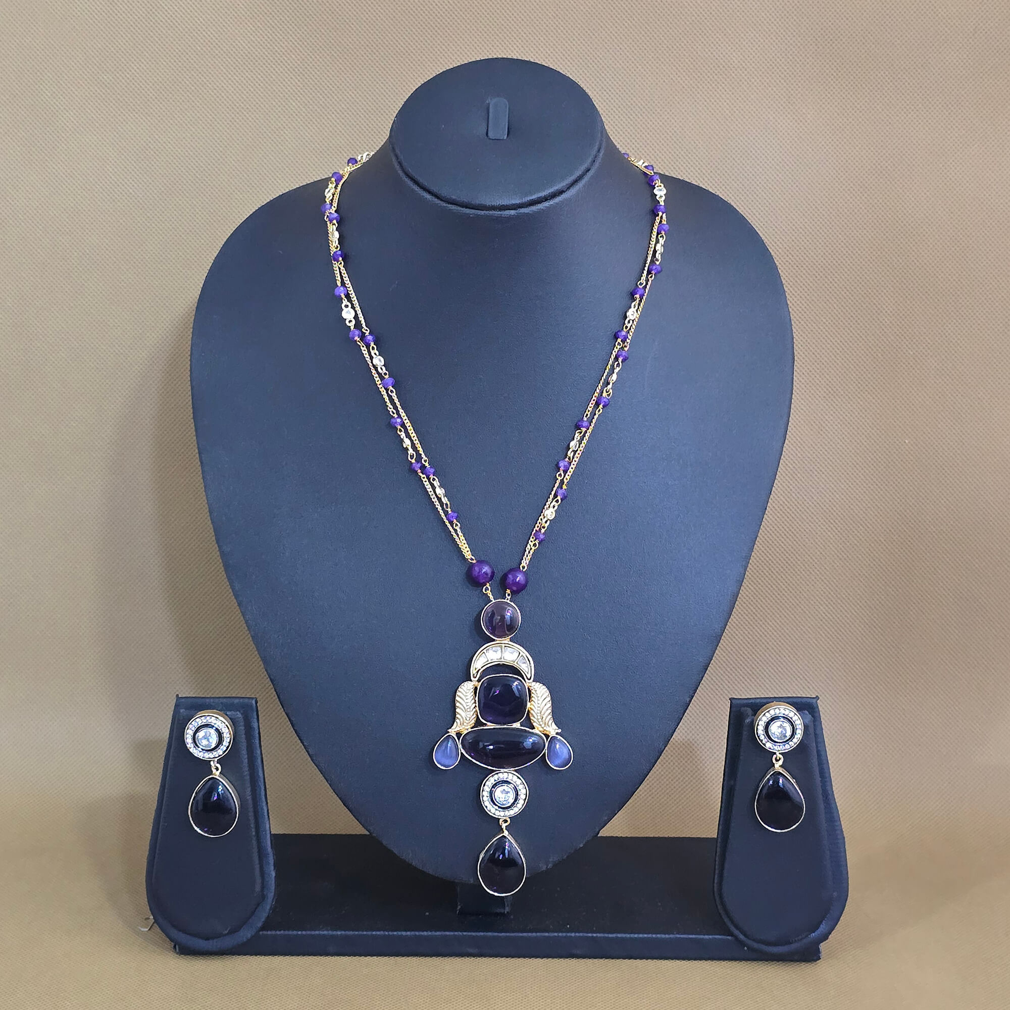 Kanhai Jewels offers an exclusive collection of finest quality crafted Fashion Jewellery in various colors. We make sure that our collection of Antique Classic Pendant Set With Matte Gold Plating are beautiful, elegent & will surely galvanize you, because our products are unique, comfortable, fashion forward & very popular for the rich look. Base Metal of our product is Alloy, i.e Mixing of Copper & Brass. We pack all the products using quality packaging material to ensure safe and secure transportation.