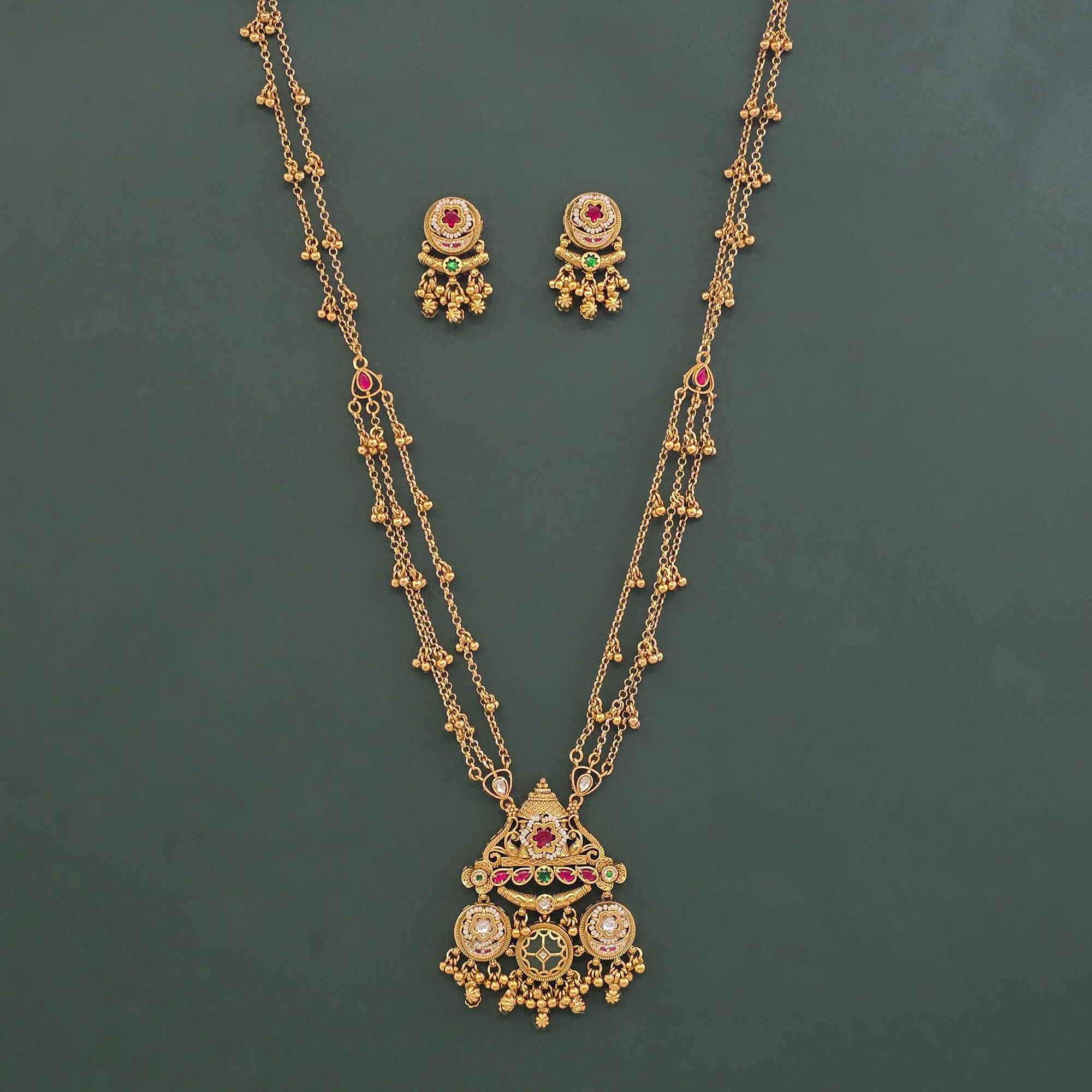 Home / Antique Pendant Set / antique classic pendant set with matte gold plating