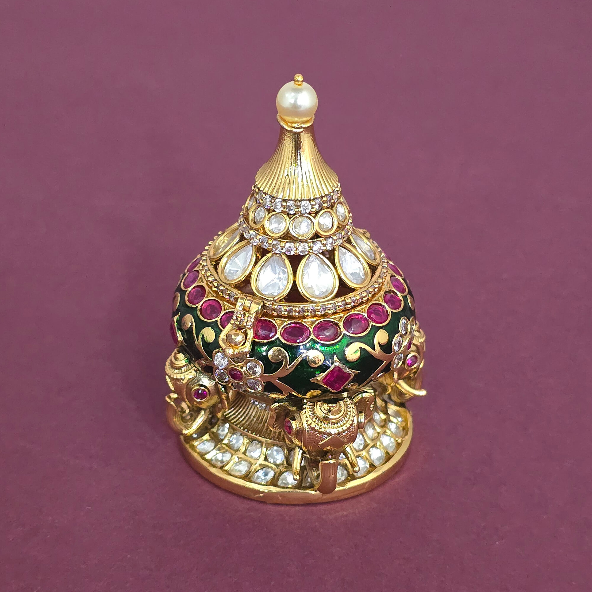 Kanhai Jewels offers an exclusive collection of finest quality crafted Fashion Jewellery in various colors. We make sure that our collection of Antique Classic Sindoor Box With Gold Plating are beautiful, elegent & will surely galvanize you, because our products are unique, comfortable, fashion forward & very popular for the rich look. Base Metal of our product is Alloy, i.e Mixing of Copper & Brass. We pack all the products using quality packaging material to ensure safe and secure transportation.