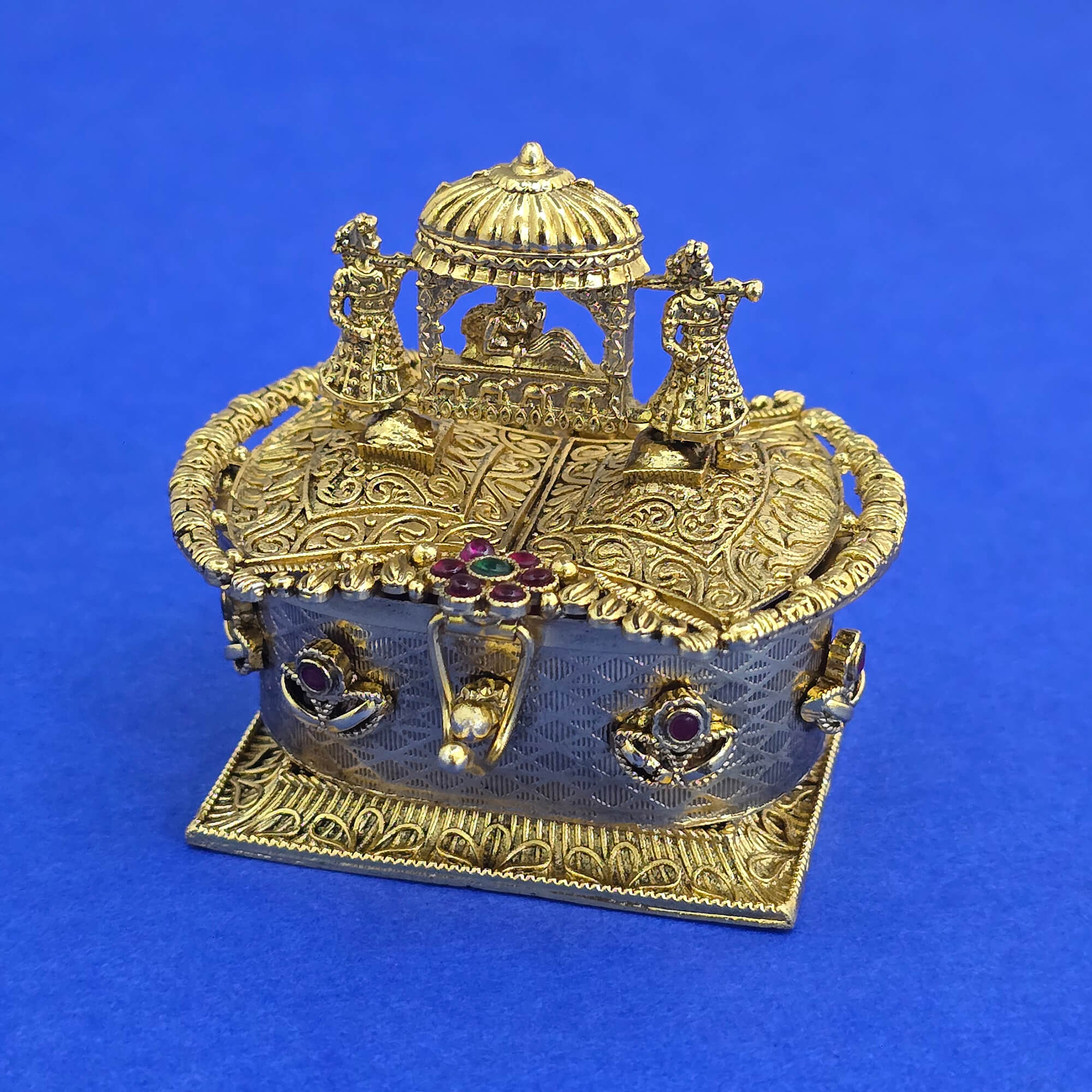 Kanhai Jewels offers an exclusive collection of finest quality crafted Fashion Jewellery in various colors. We make sure that our collection of Antique Sindoor Box with Matte Gold Plating are beautiful, elegant & will surely galvanize you, because our products are unique, comfortable, fashion forward & very popular for the rich look. Base Metal of our product is Alloy, i.e mixing of Copper & Brass. We pack all the products using quality packaging material to ensure safe and secure transportation.