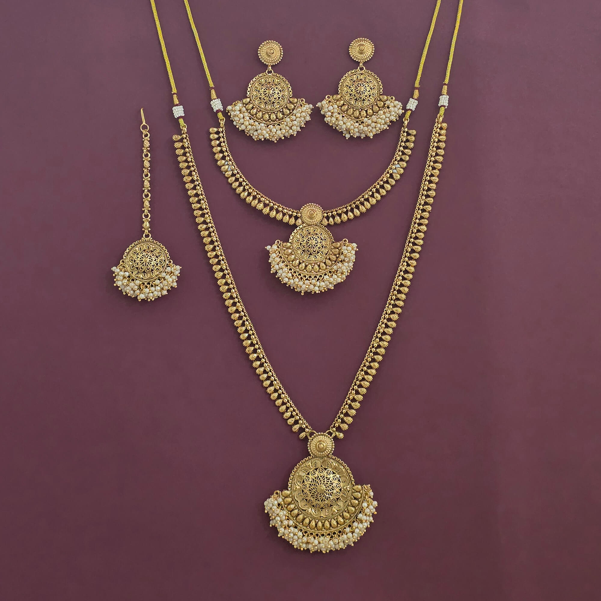 Home / Antique Necklace / antique combo necklace set with gold plating