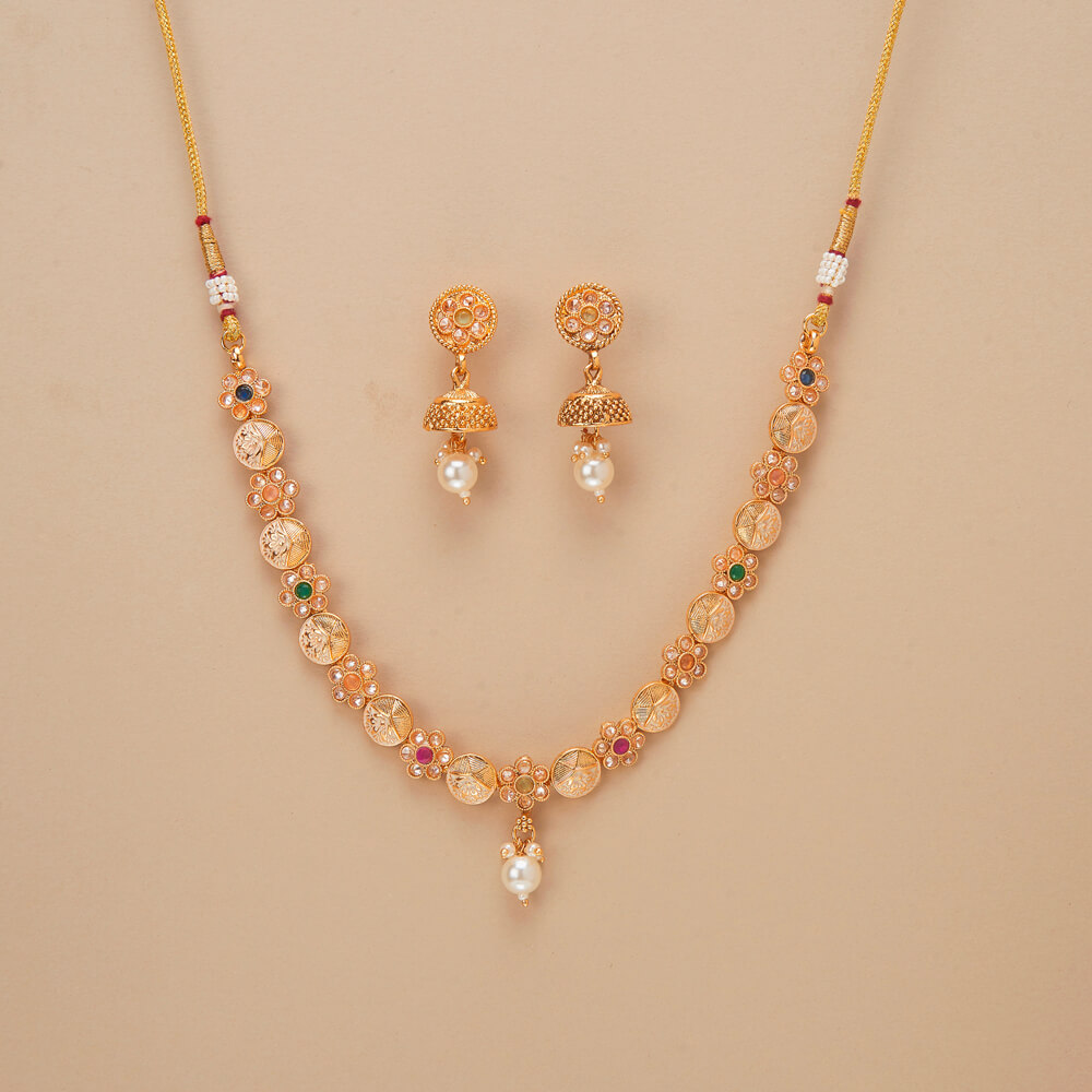 Kanhai Jewels offers an exclusive collection of finest quality crafted Fashion Jewellery in various colors. We make sure that our collection of Antique Delicate Necklace Set With Gold Plating are beautiful, elegent & will surely galvanize you, because our products are unique, comfortable, fashion forward & very popular for the rich look. Base Metal of our product is Alloy, i.e Mixing of Copper & Brass. We pack all the products using quality packaging material to ensure safe and secure transportation.