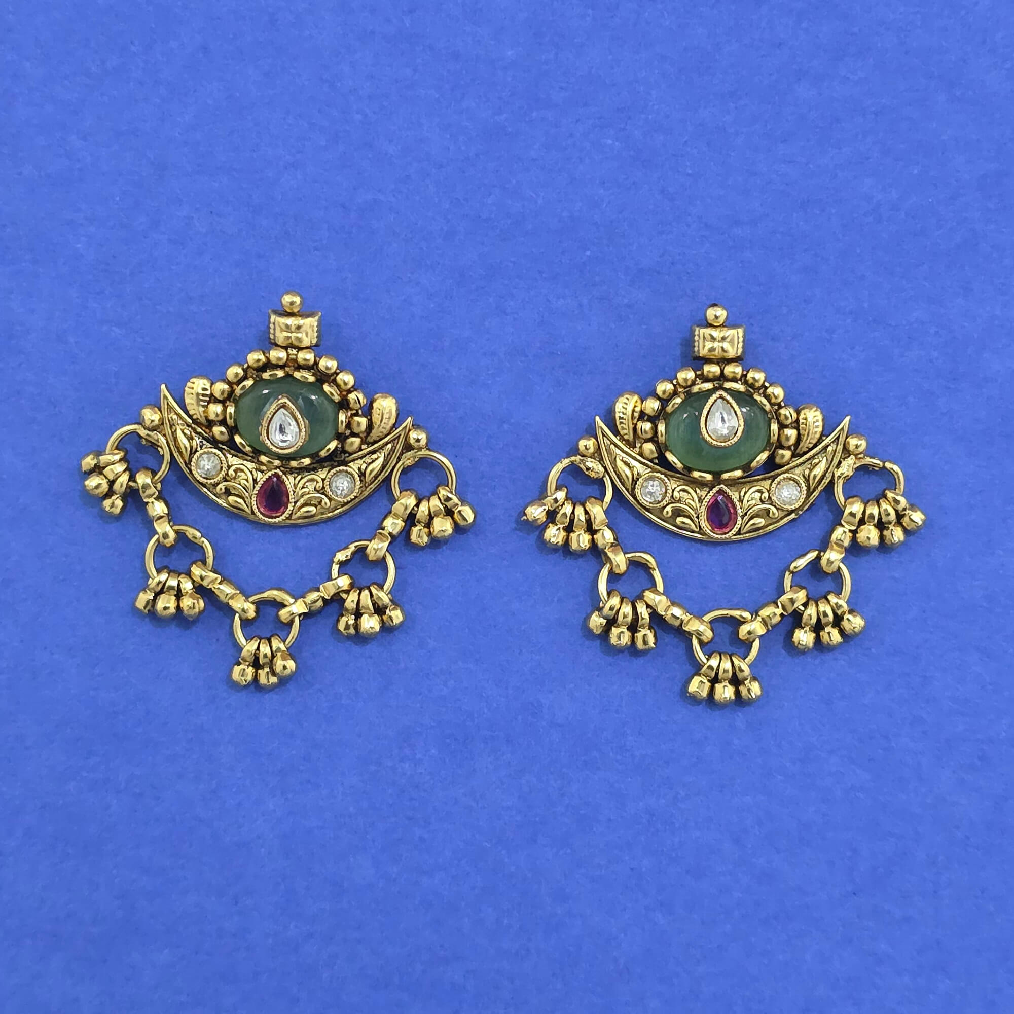 Kanhai Jewels offers an exclusive collection of finest quality crafted Fashion Jewellery in various colors. We make sure that our collection of Antique Heritage Earring With Matte Gold Plating are beautiful, elegent & will surely galvanize you, because our products are unique, comfortable, fashion forward & very popular for the rich look. Base Metal of our product is Alloy, i.e Mixing of Copper & Brass. We pack all the products using quality packaging material to ensure safe and secure transportation.