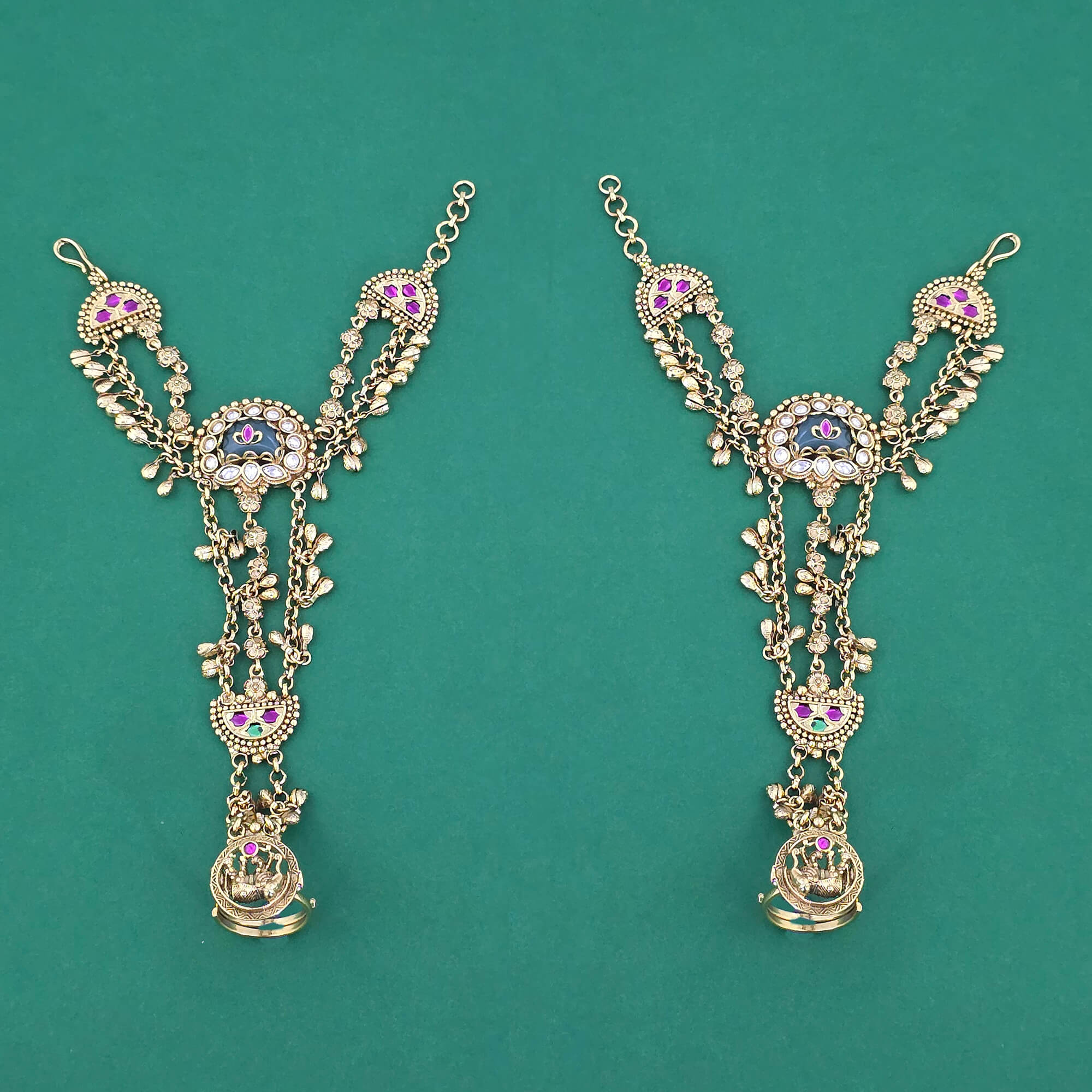 Kanhai Jewels offers an exclusive collection of finest quality crafted Fashion Jewellery in various colors. We make sure that our collection of Antique Heritage Hath Pan With Matte Gold Plating are beautiful, elegent & will surely galvanize you, because o