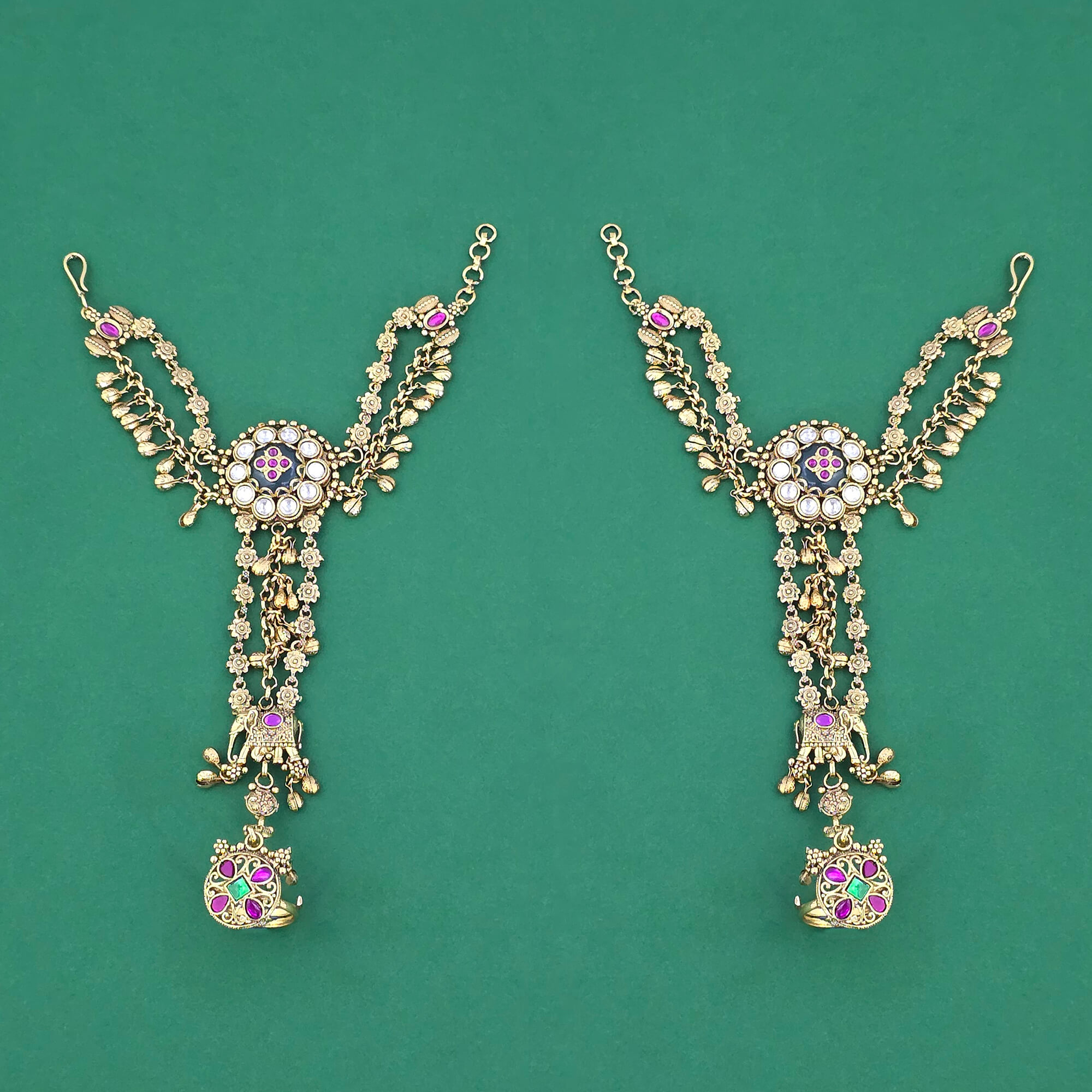 Kanhai Jewels offers an exclusive collection of finest quality crafted Fashion Jewellery in various colors. We make sure that our collection of Antique Heritage Hath Pan With Matte Gold Plating are beautiful, elegent & will surely galvanize you, because o