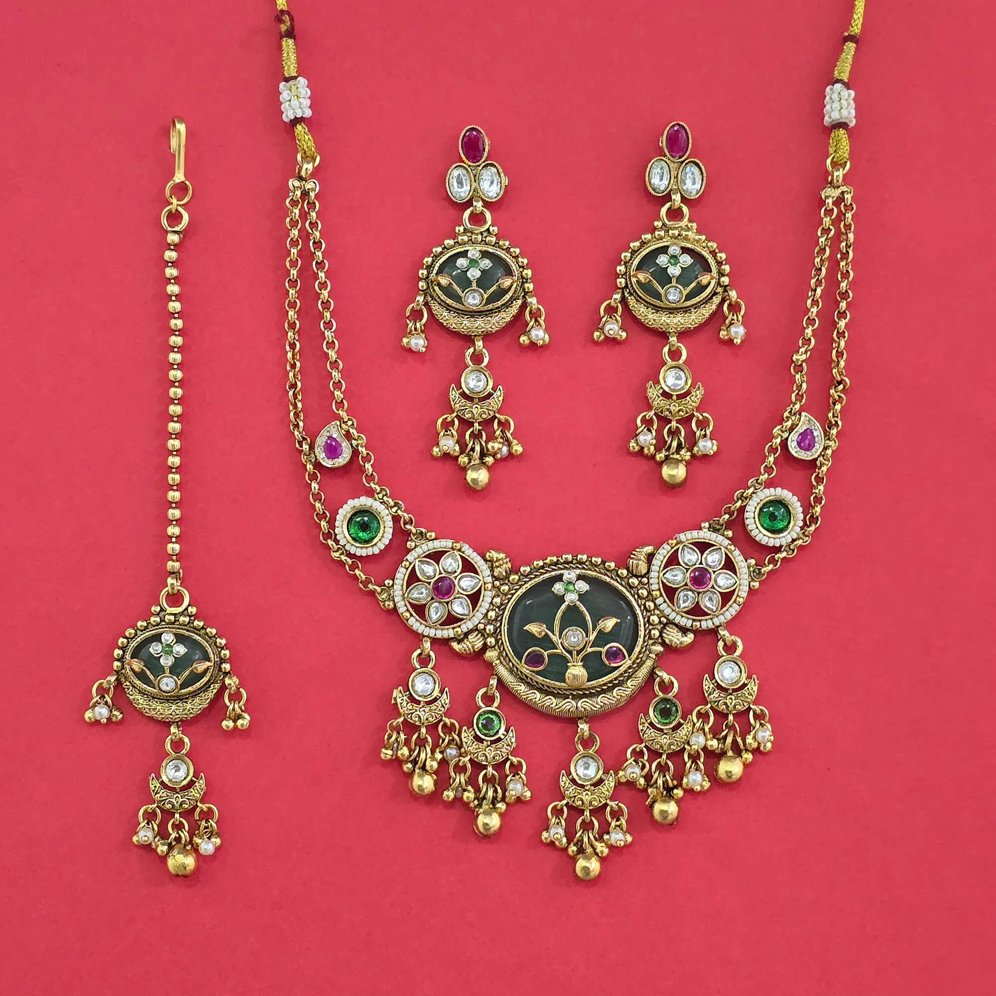 Home / Antique Necklace / antique heritage necklace set set with matte gold plating