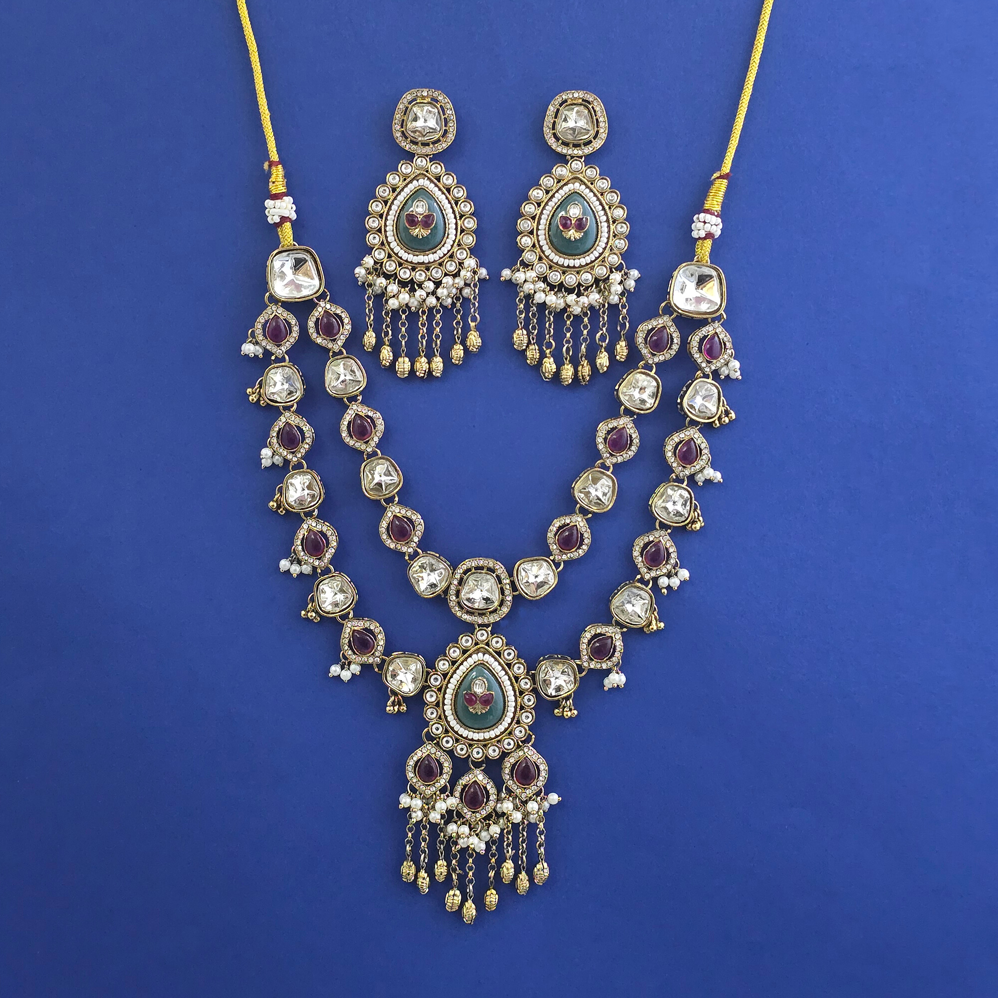 Home / Antique Necklace / antique heritage necklace with mehndi plating