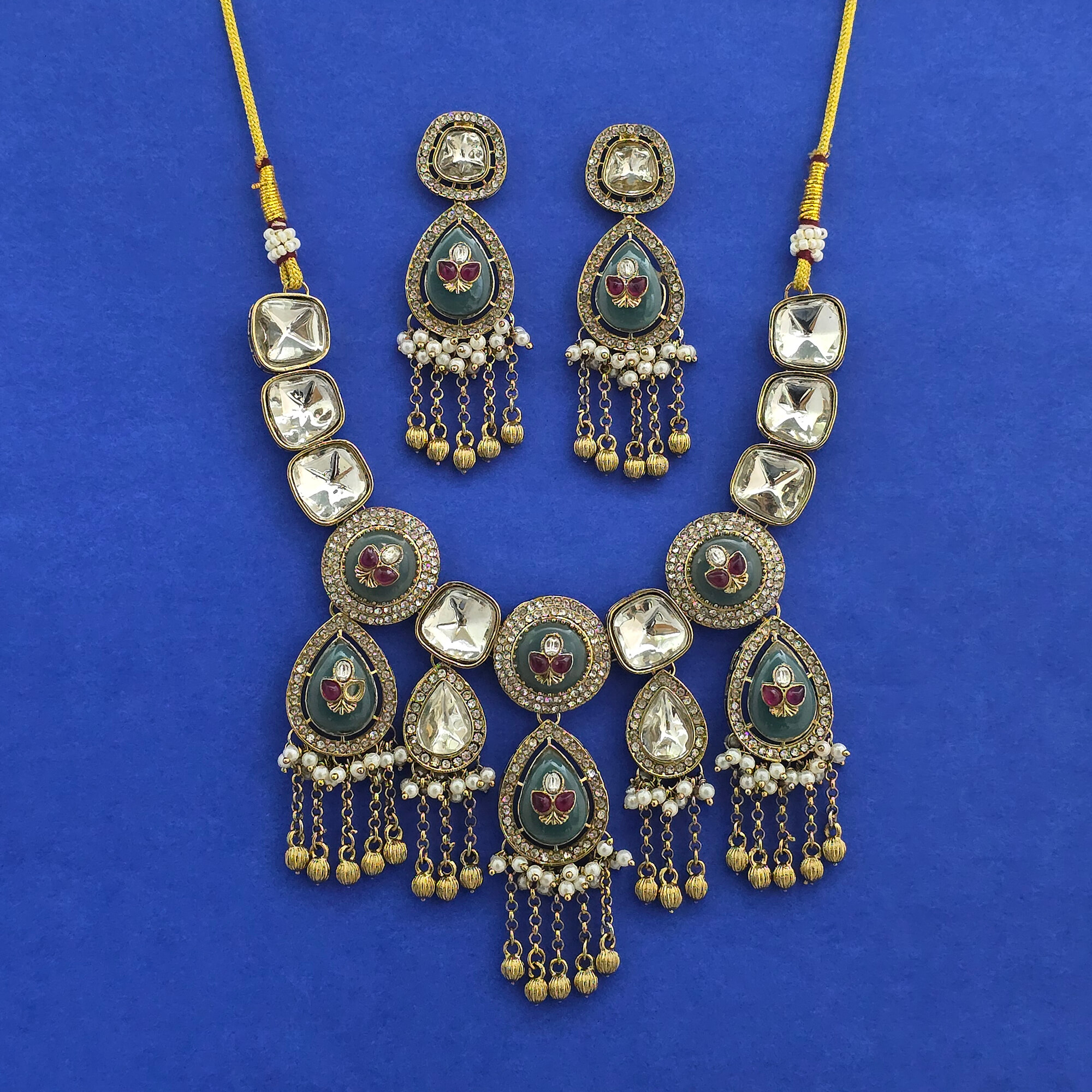 Kanhai Jewels offers an exclusive collection of finest quality crafted Fashion Jewellery in various colors. We make sure that our collection of Antique Heritage Necklace With Mehndi Plating are beautiful, elegant & will surely galvanize you, because our products are unique, comfortable, fashion forward & very popular for the rich look. Base Metal of our product is Alloy, i.e mixing of Copper & Brass. We pack all the products using quality packaging material to ensure safe and secure transportation.