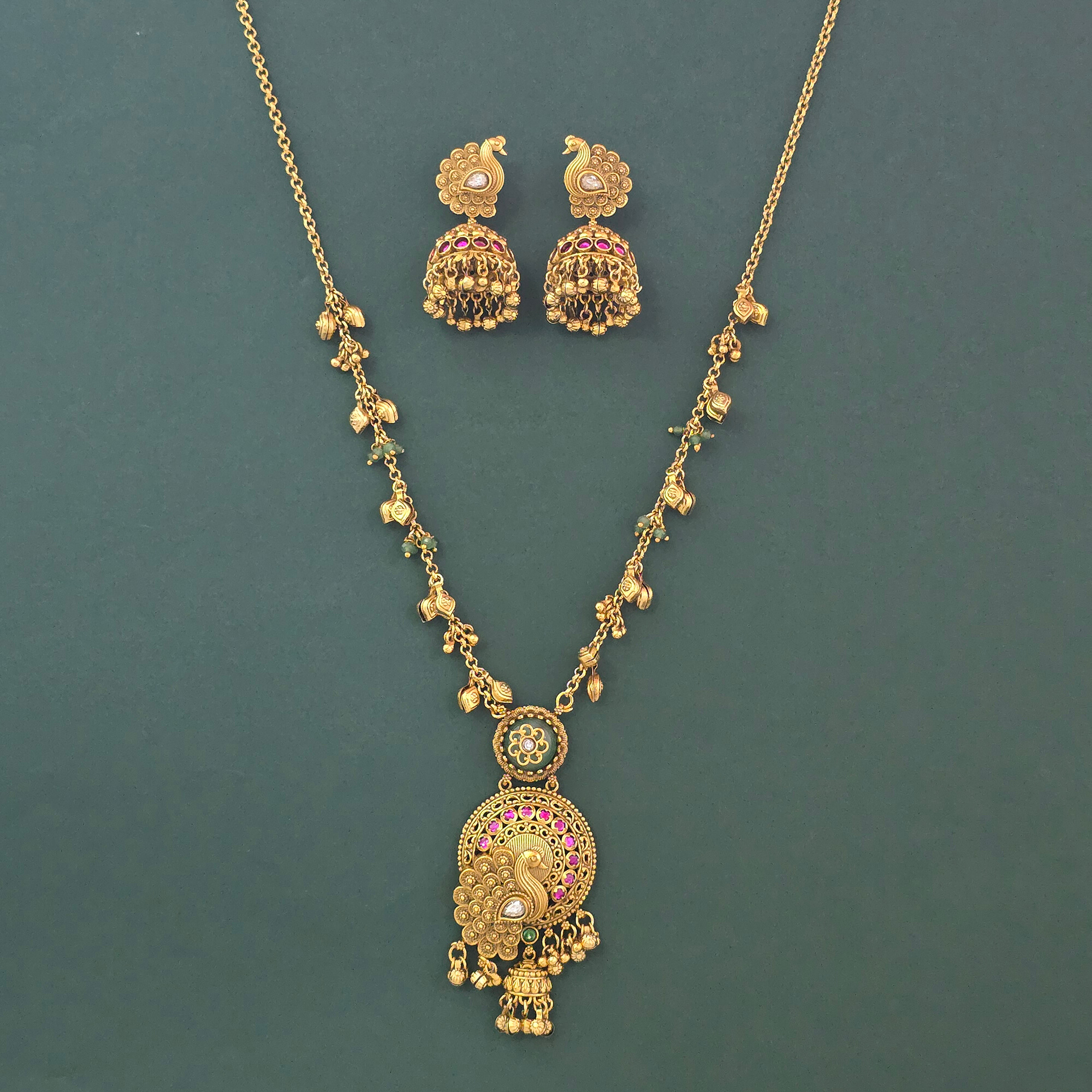 • Antique Heritage Pendant Set With Matte Gold Plating