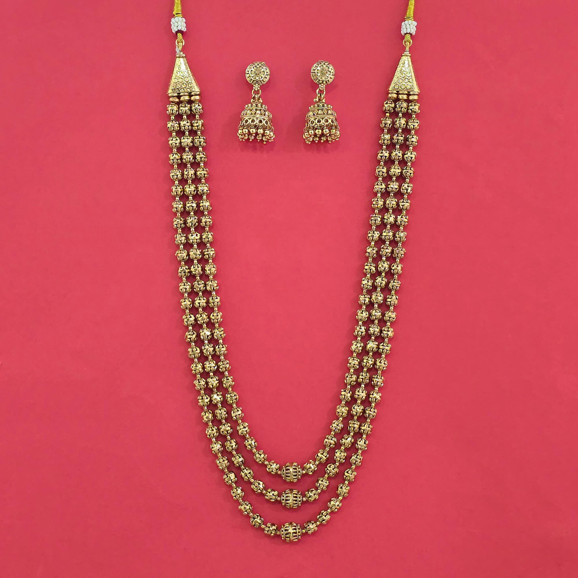 Kanhai Jewels offers an exclusive collection of finest quality crafted Fashion Jewellery in various colors. We make sure that our collection of Antique Long Mala With Gold Plating are beautiful, elegent & will surely galvanize you, because our products are unique, comfortable, fashion forward & very popular for the rich look. Base Metal of our product is Alloy, i.e Mixing of Copper & Brass. We pack all the products using quality packaging material to ensure safe and secure transportation.