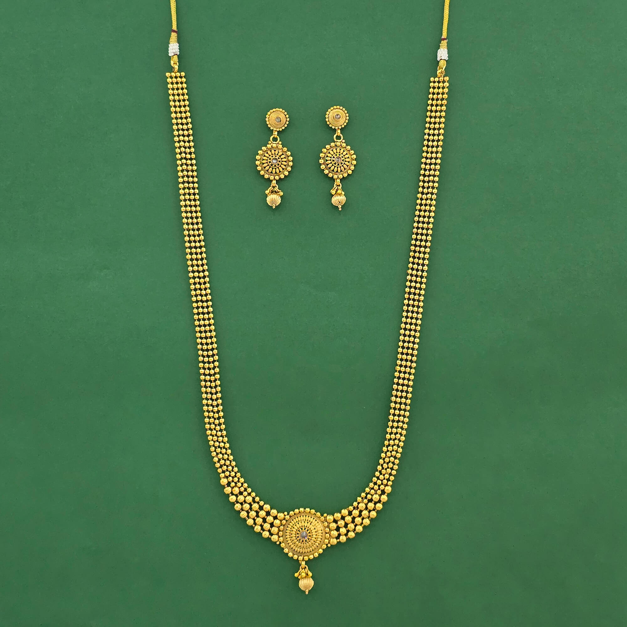 Kanhai Jewels offers an exclusive collection of finest quality crafted Fashion Jewellery in various colors. We make sure that our collection of Antique Long Necklace Set Set With Gold Plating are beautiful, elegent & will surely galvanize you, because our products are unique, comfortable, fashion forward & very popular for the rich look. Base Metal of our product is Alloy, i.e Mixing of Copper & Brass. We pack all the products using quality packaging material to ensure safe and secure transportation.