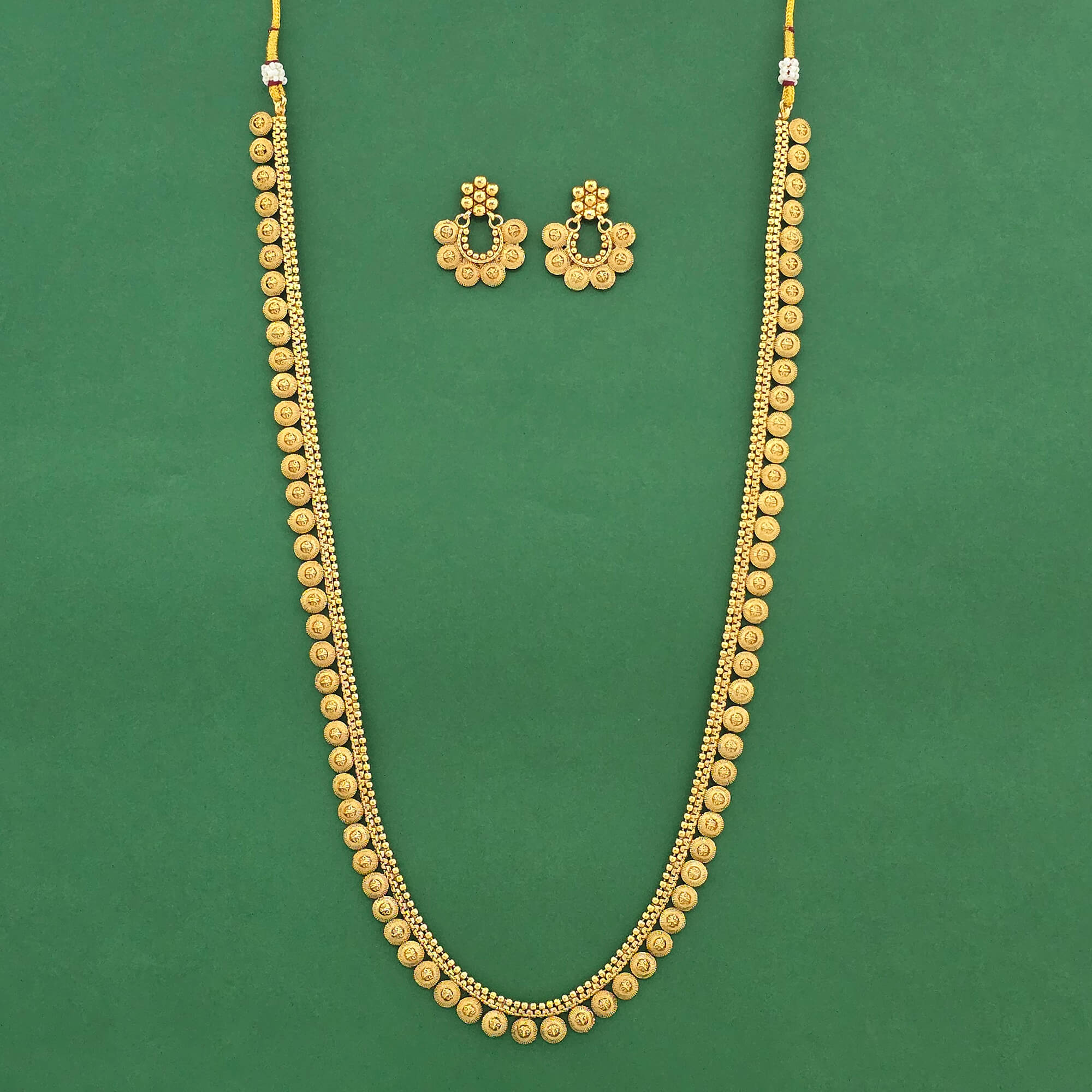 Kanhai Jewels offers an exclusive collection of finest quality crafted Fashion Jewellery in various colors. We make sure that our collection of Antique Long Necklace Set Set With Gold Plating are beautiful, elegent & will surely galvanize you, because our products are unique, comfortable, fashion forward & very popular for the rich look. Base Metal of our product is Alloy, i.e Mixing of Copper & Brass. We pack all the products using quality packaging material to ensure safe and secure transportation.