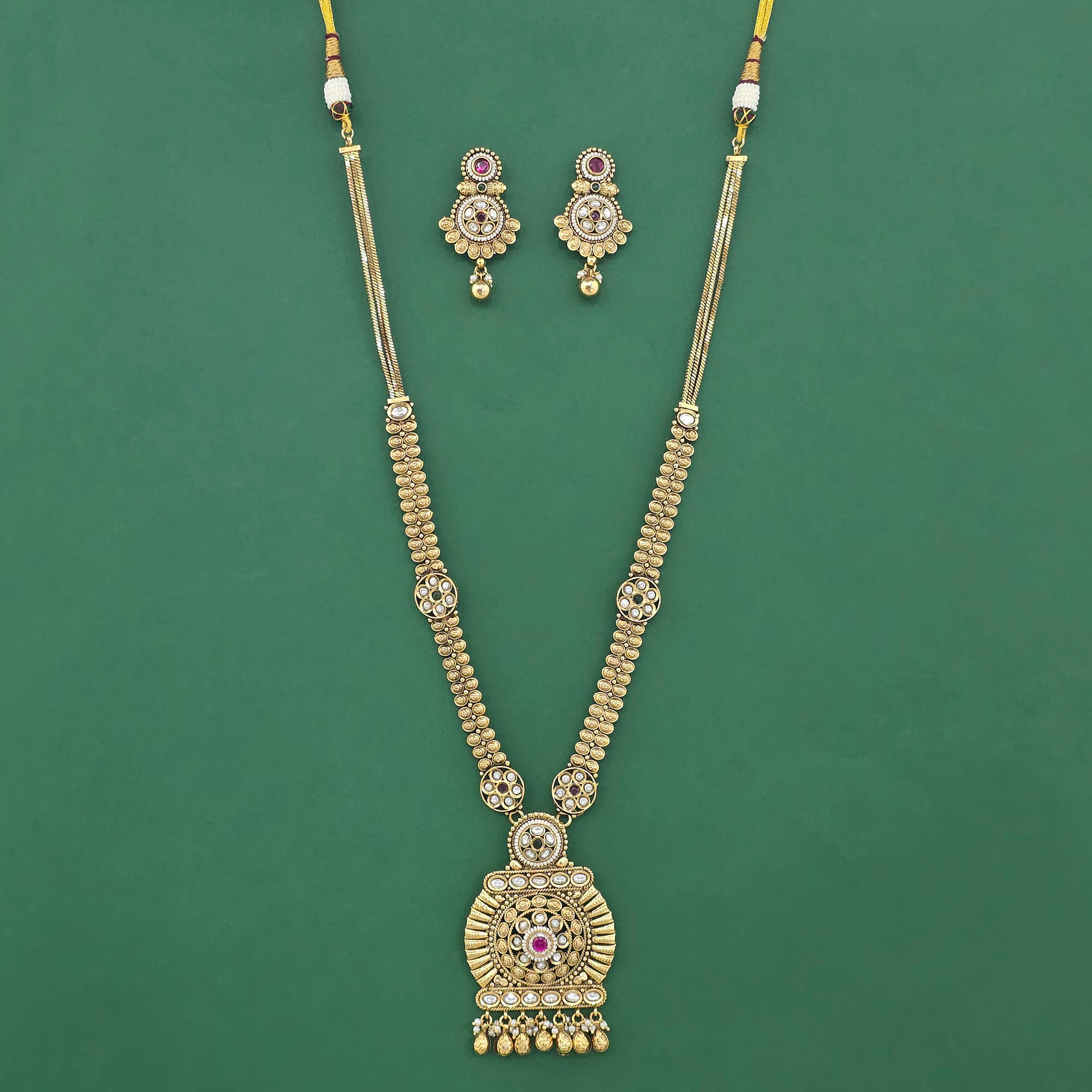 Home / Antique Necklace / antique long necklace set with gold plating