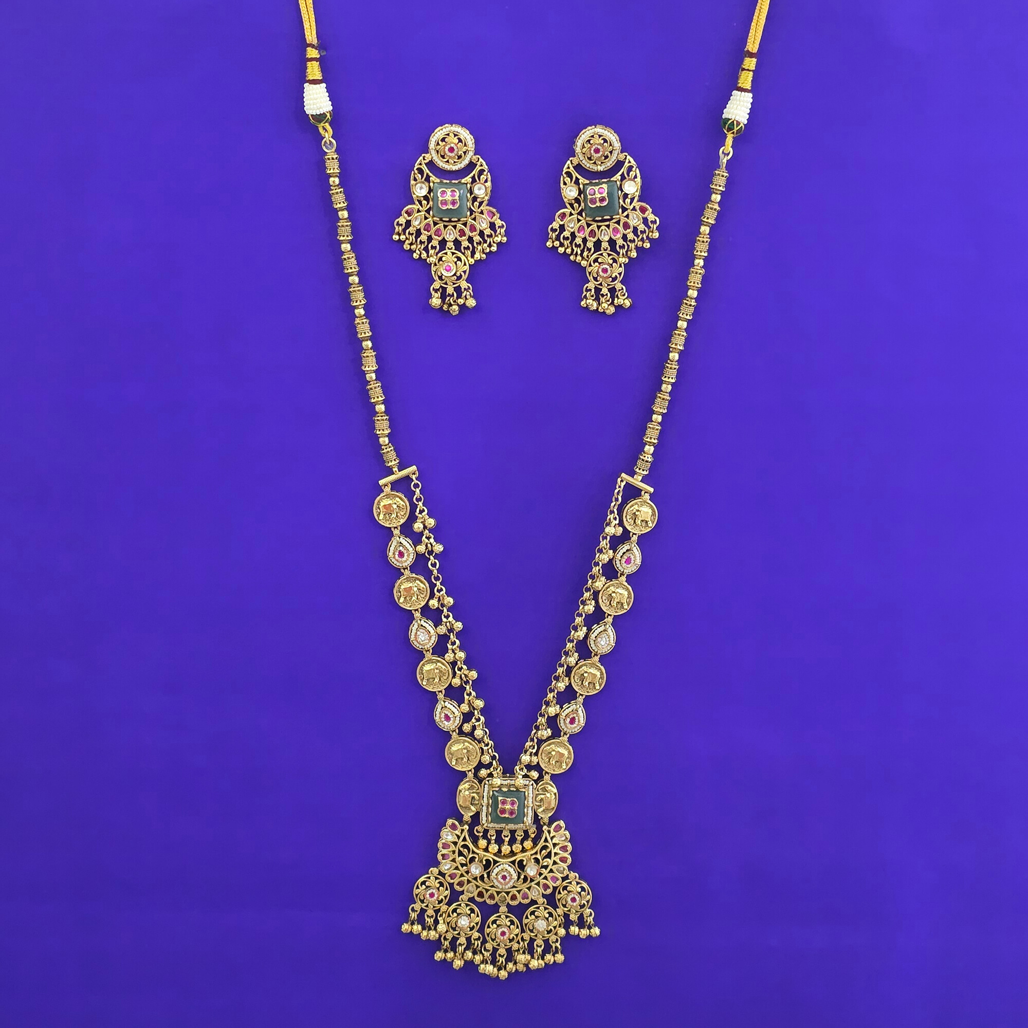 Kanhai Jewels offers an exclusive collection of finest quality crafted Fashion Jewellery in various colors. We make sure that our collection of Antique Long Necklace With Gold Plating are beautiful, elegent & will surely galvanize you, because our products are unique, comfortable, fashion forward & very popular for the rich look. Base Metal of our product is Alloy, i.e Mixing of Copper & Brass. We pack all the products using quality packaging material to ensure safe and secure transportation.