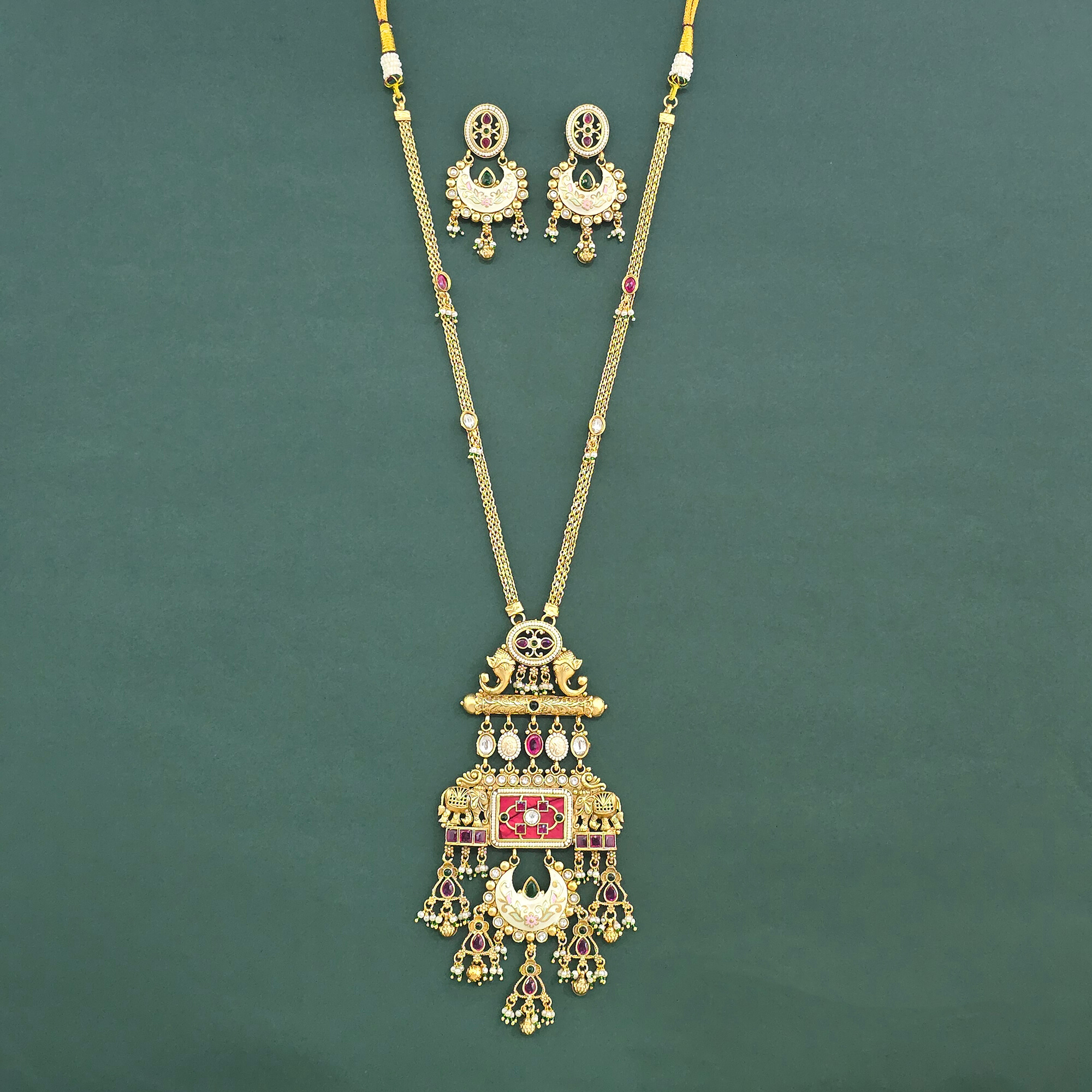 Kanhai Jewels offers an exclusive collection of finest quality crafted Fashion Jewellery in various colors. We make sure that our collection of Antique Long Necklace With Matte Gold Plating are beautiful, elegent & will surely galvanize you, because our products are unique, comfortable, fashion forward & very popular for the rich look. Base Metal of our product is Alloy, i.e Mixing of Copper & Brass. We pack all the products using quality packaging material to ensure safe and secure transportation.