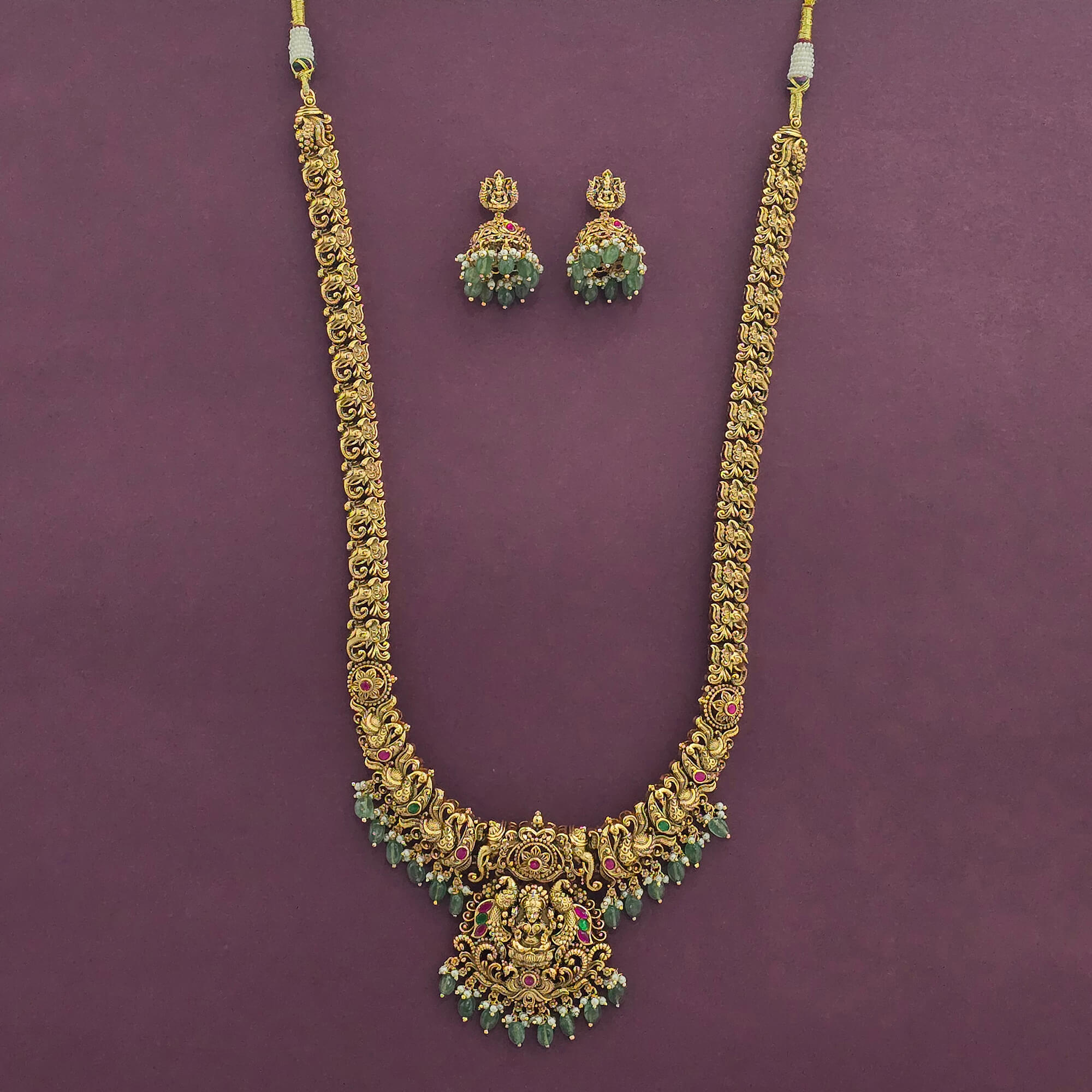 Kanhai Jewels offers an exclusive collection of finest quality crafted Fashion Jewellery in various colors. We make sure that our collection of Antique Long Necklace With Matte Gold Plating are beautiful, elegent & will surely galvanize you, because our products are unique, comfortable, fashion forward & very popular for the rich look. Base Metal of our product is Alloy, i.e Mixing of Copper & Brass. We pack all the products using quality packaging material to ensure safe and secure transportation.