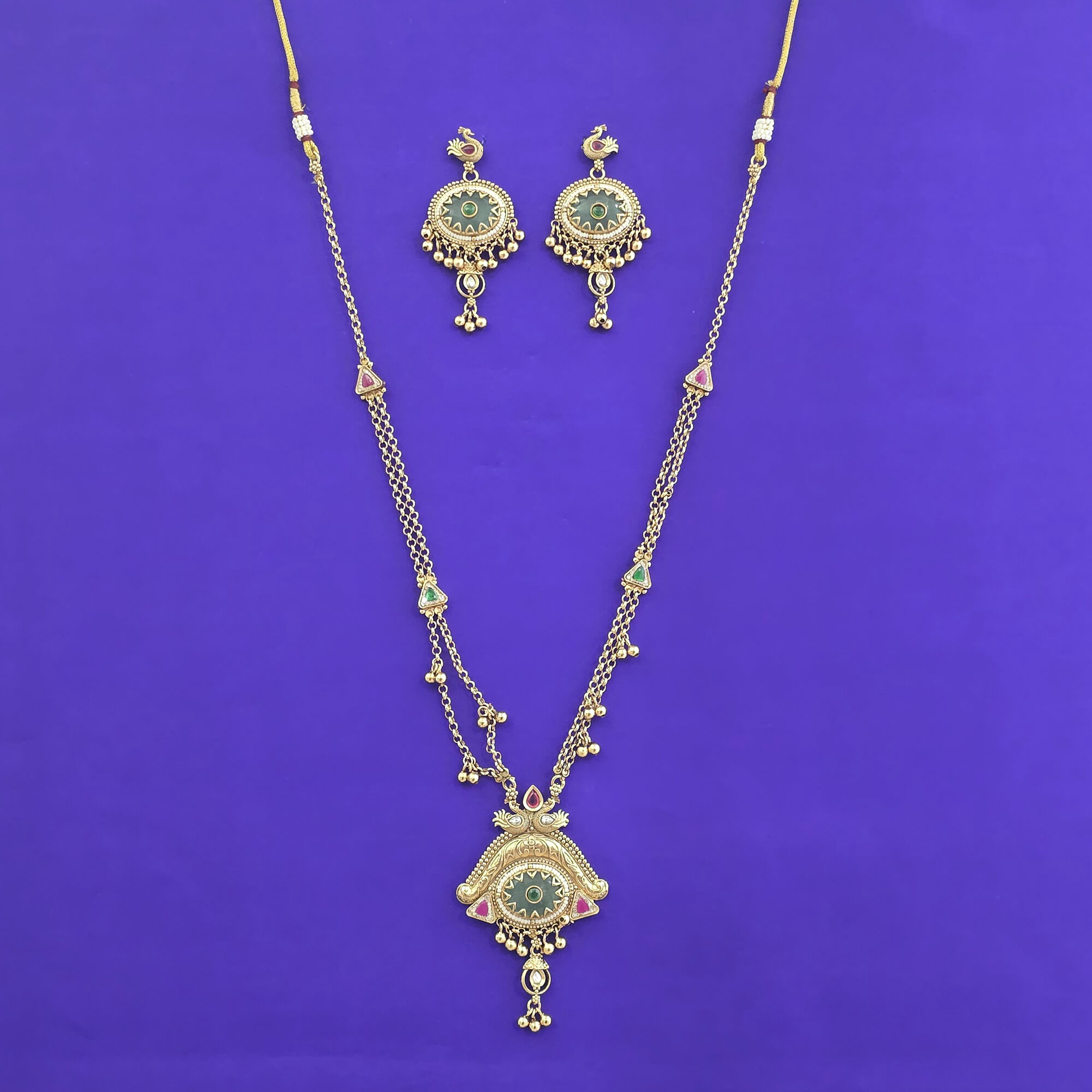 Kanhai Jewels offers an exclusive collection of finest quality crafted Fashion Jewellery in various colors. We make sure that our collection of Antique Long Necklace With Matte Gold Plating are beautiful, elegent & will surely galvanize you, because our products are unique, comfortable, fashion forward & very popular for the rich look. Base Metal of our product is Alloy, i.e Mixing of Copper & Brass. We pack all the products using quality packaging material to ensure safe and secure transportation.