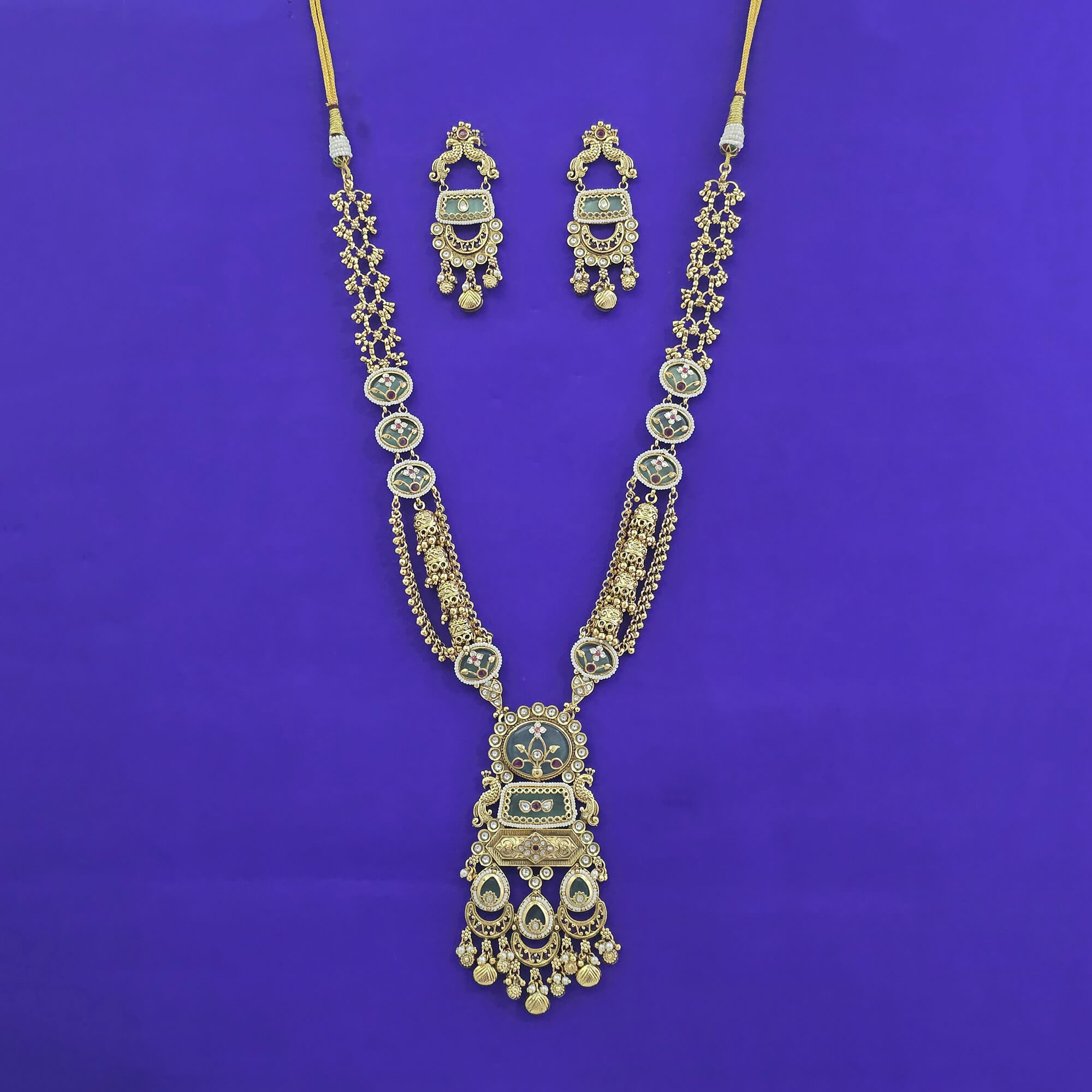 Kanhai Jewels offers an exclusive collection of finest quality crafted Fashion Jewellery in various colors. We make sure that our collection of Antique Long Necklace With Matte Gold Plating are beautiful, elegent & will surely galvanize you, because our products are unique, comfortable, fashion forward & very popular for the rich look. Base Metal of our product is Alloy, i.e Mixing of Copper & Brass. We pack all the products using quality packaging material to ensure safe and secure transportation.