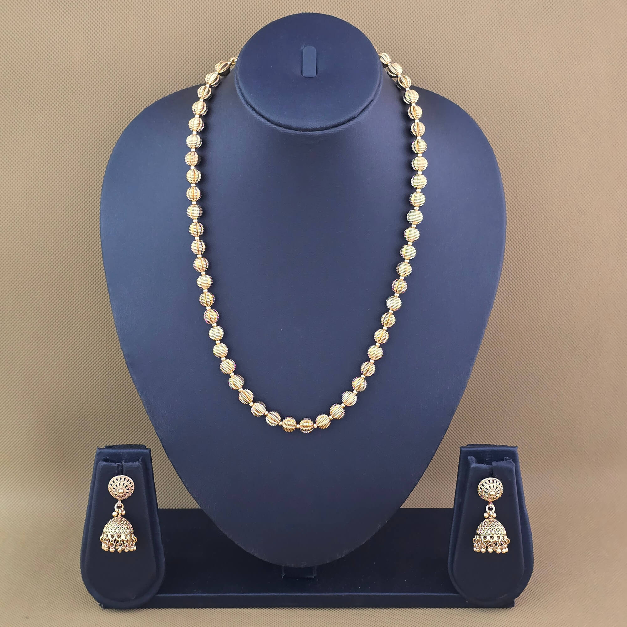 Kanhai Jewels offers an exclusive collection of finest quality crafted Fashion Jewellery in various colors. We make sure that our collection of Antique Mala Necklace Set With Gold Plating are beautiful, elegent & will surely galvanize you, because our products are unique, comfortable, fashion forward & very popular for the rich look. Base Metal of our product is Alloy, i.e Mixing of Copper & Brass. We pack all the products using quality packaging material to ensure safe and secure transportation.