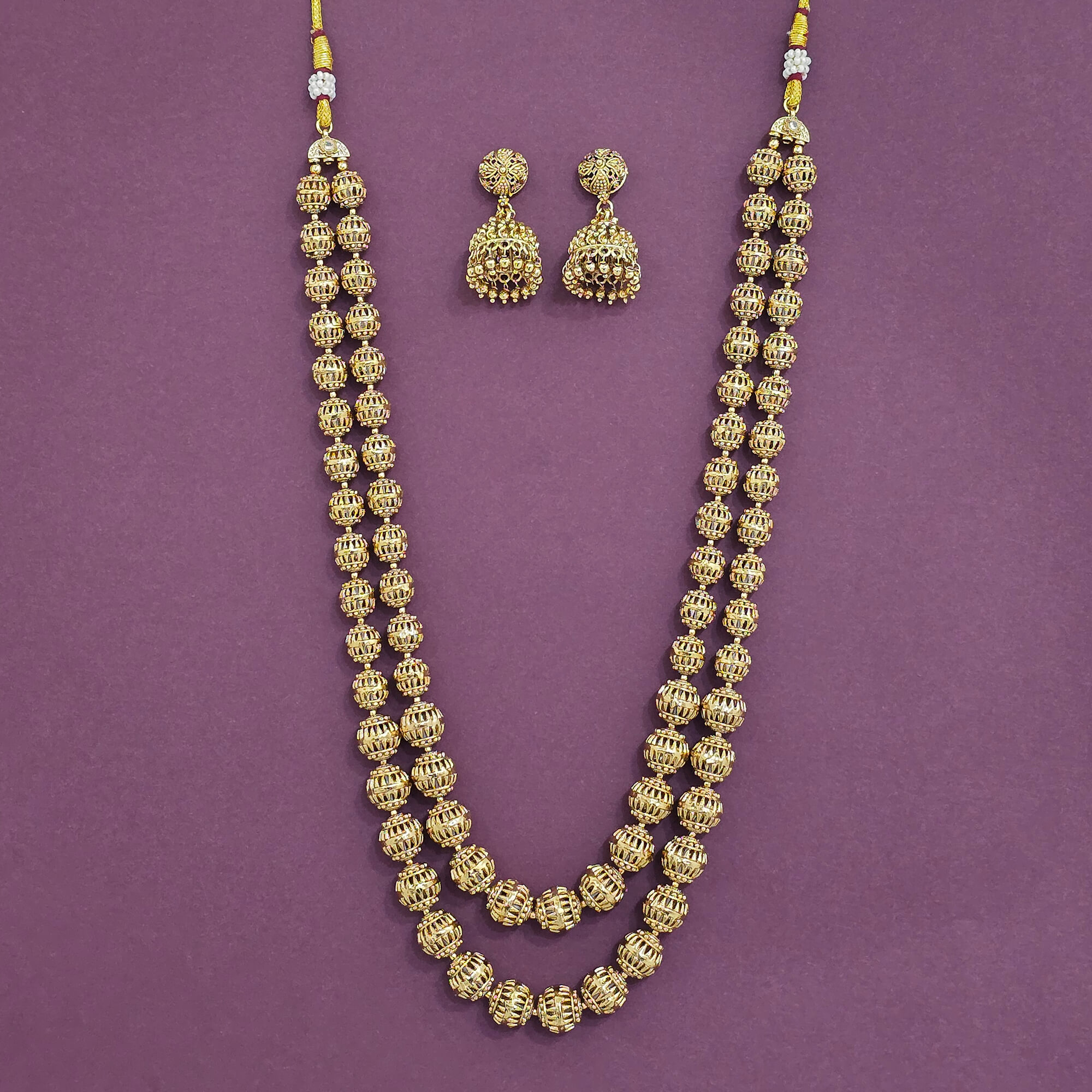 Kanhai Jewels offers an exclusive collection of finest quality crafted Fashion Jewellery in various colors. We make sure that our collection of Antique Mala Necklace Set With Gold Plating are beautiful, elegent & will surely galvanize you, because our products are unique, comfortable, fashion forward & very popular for the rich look. Base Metal of our product is Alloy, i.e Mixing of Copper & Brass. We pack all the products using quality packaging material to ensure safe and secure transportation.