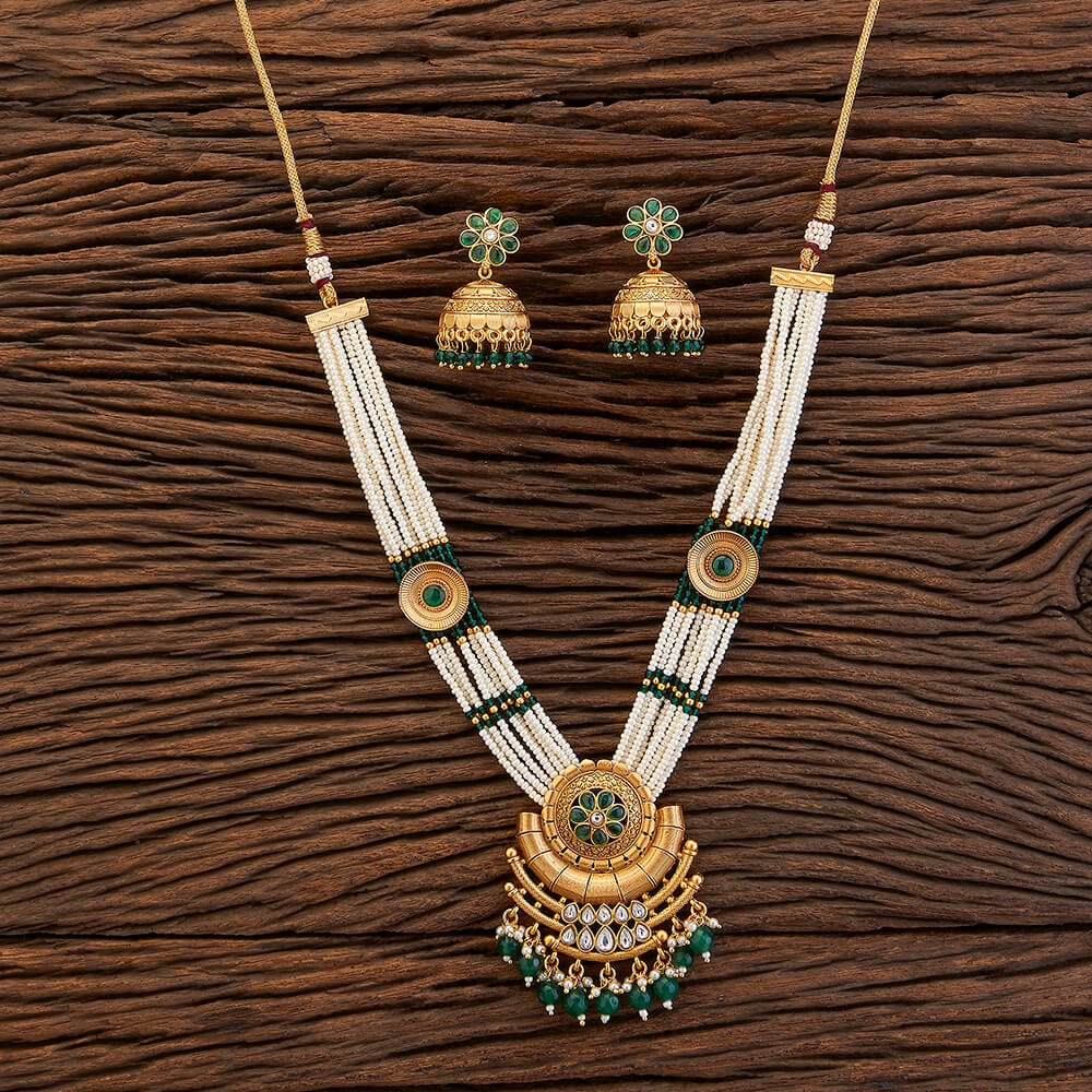 216560 Antique Mala Pendant Set With Matte Gold Plating