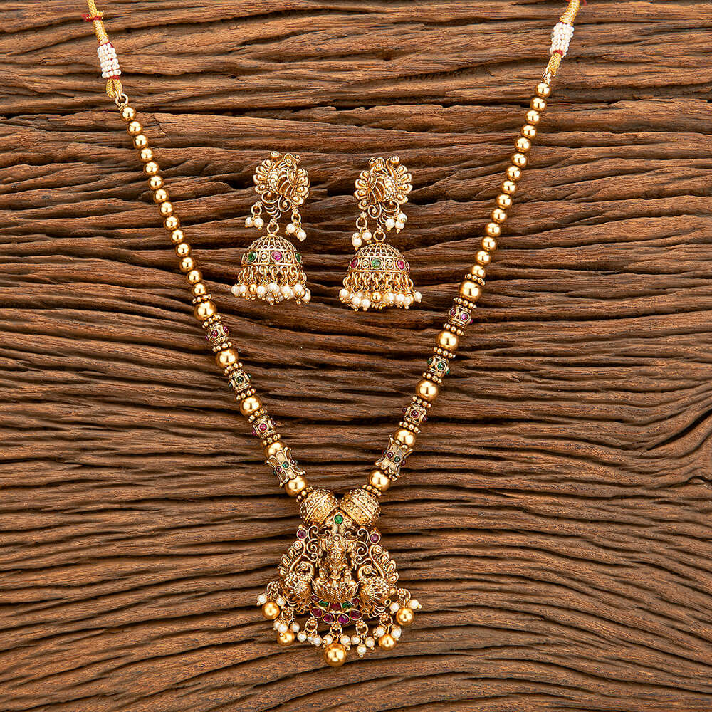 Home / Antique Pendant Set / antique mala pendant set with matte gold plating