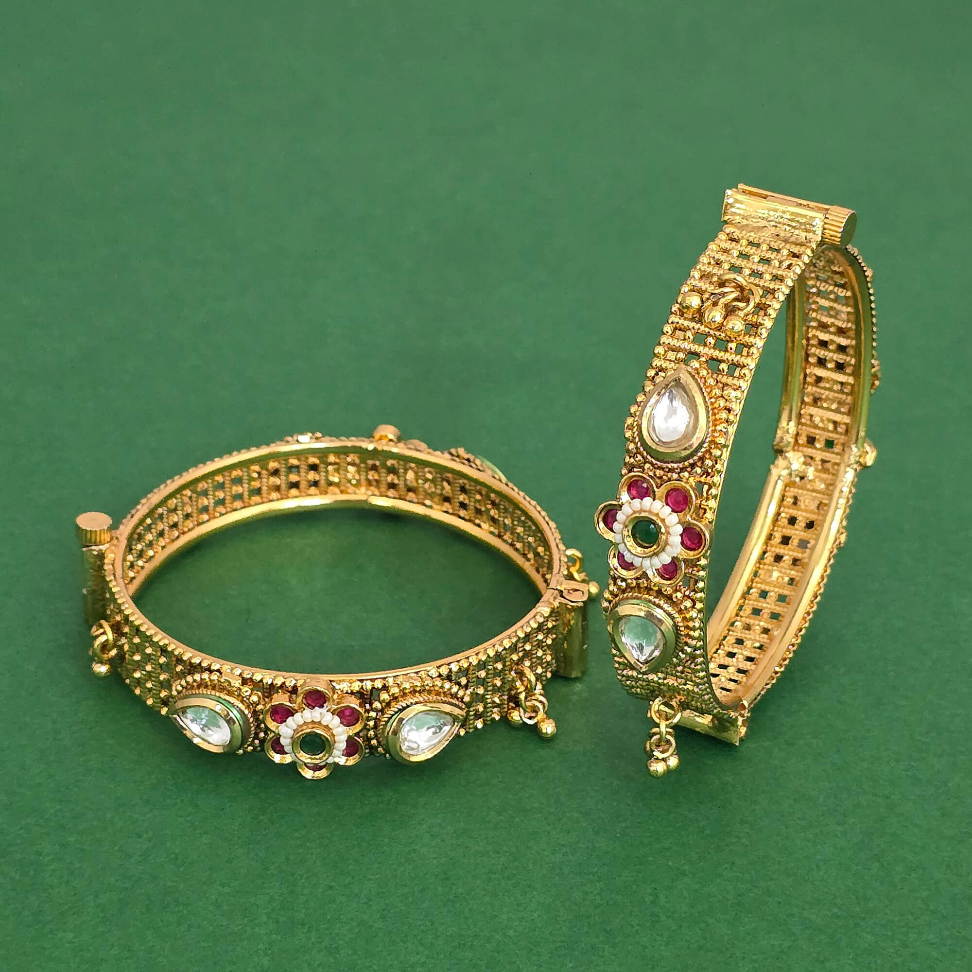 Kanhai Jewels offers an exclusive collection of finest quality crafted Fashion Jewellery in various colors. We make sure that our collection of Antique Meenakari Bangles With Gold Plating are beautiful, elegent & will surely galvanize you, because our products are unique, comfortable, fashion forward & very popular for the rich look. Base Metal of our product is Alloy, i.e Mixing of Copper & Brass. We pack all the products using quality packaging material to ensure safe and secure transportation.