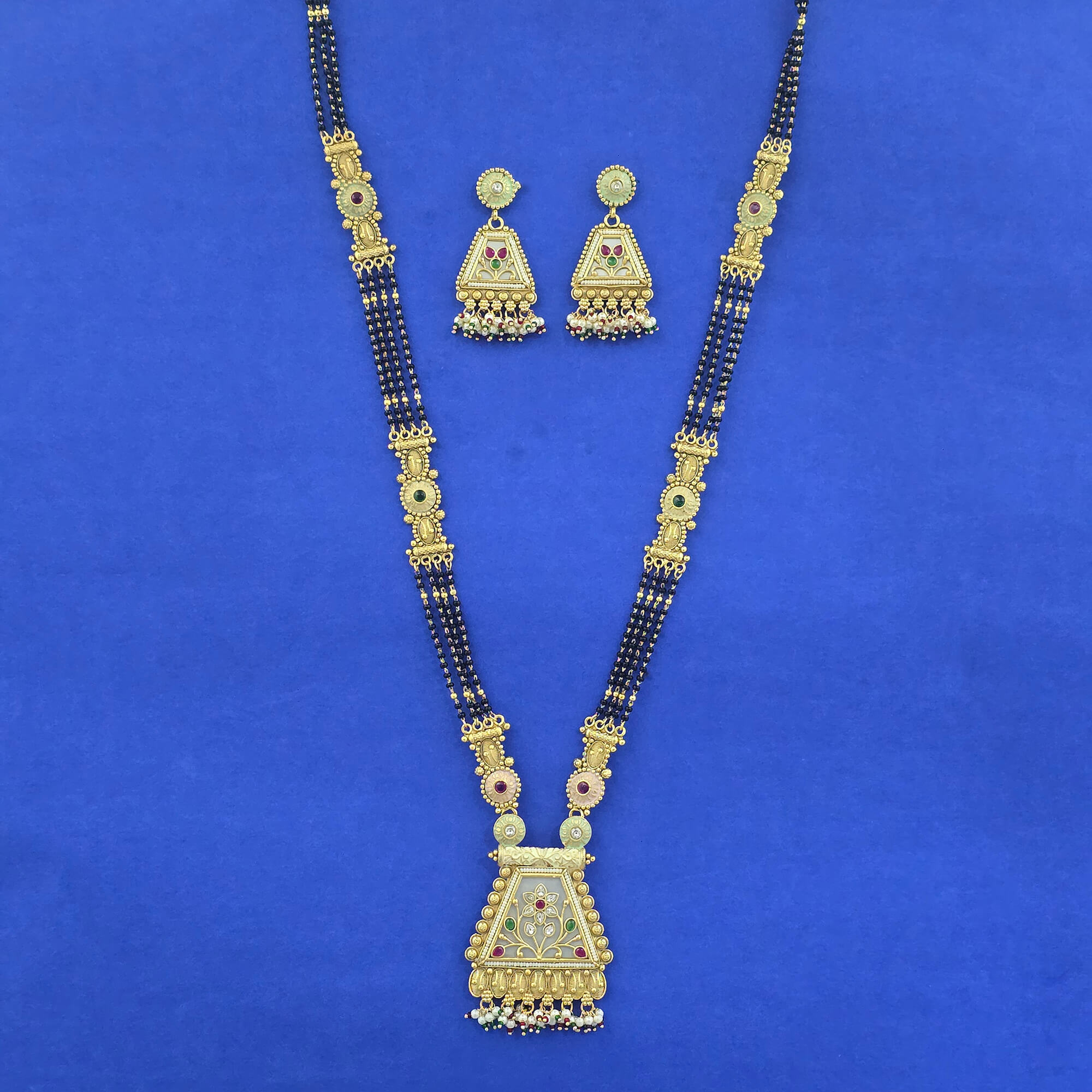 Kanhai Jewels offers an exclusive collection of finest quality crafted Fashion Jewellery in various colors. We make sure that our collection of Antique Meenakari Mangalsutra With Matte Gold Plating are beautiful, elegent & will surely galvanize you, because our products are unique, comfortable, fashion forward & very popular for the rich look. Base Metal of our product is Alloy, i.e Mixing of Copper & Brass. We pack all the products using quality packaging material to ensure safe and secure transportation.