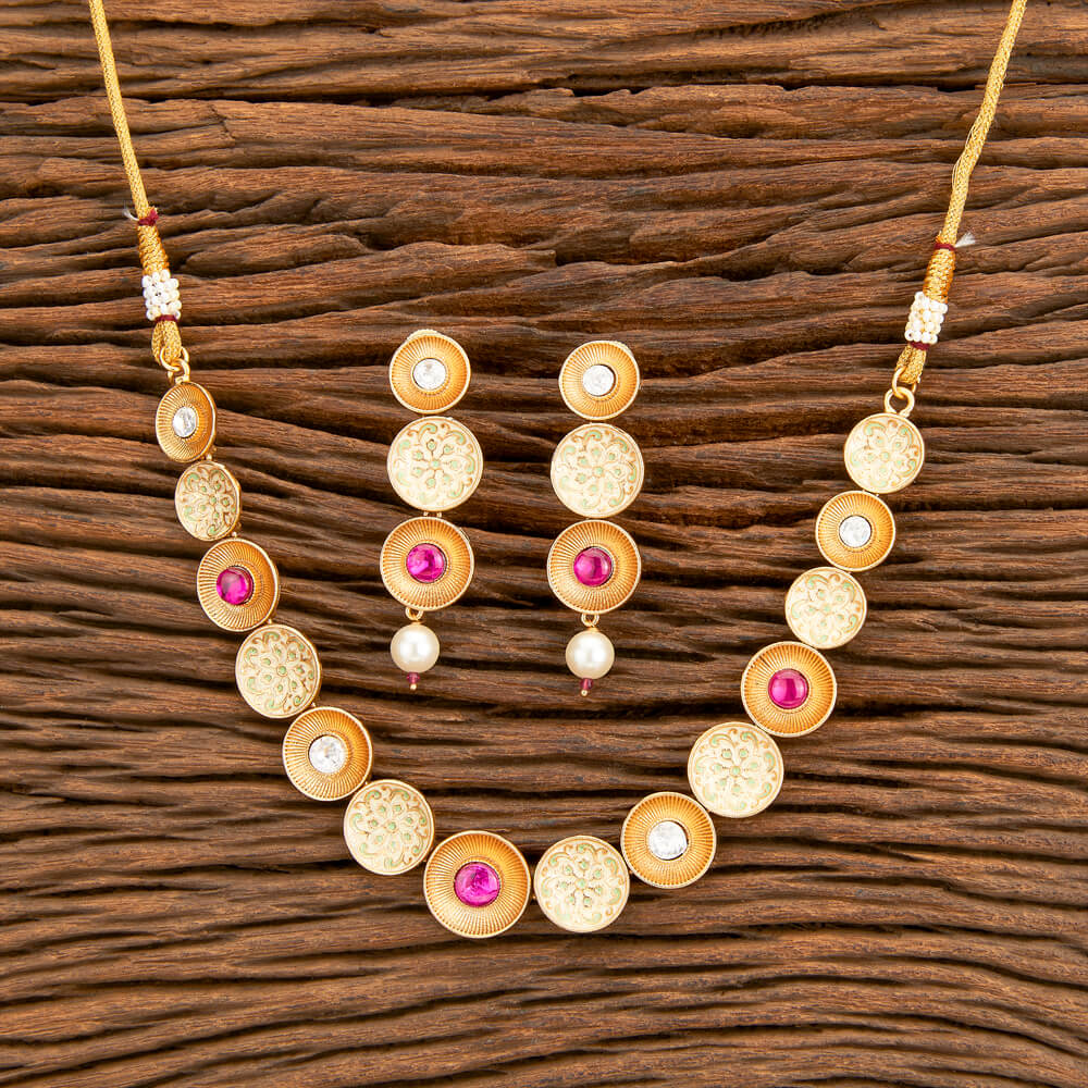 218558 Antique Meenakari Necklace With Matte Gold Plating