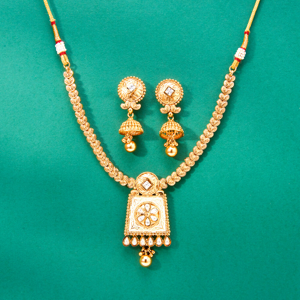 Kanhai Jewels offers an exclusive collection of finest quality crafted Fashion Jewellery in various colors. We make sure that our collection of Antique Meenakari Necklace With Matte Gold Plating are beautiful, elegent & will surely galvanize you, because our products are unique, comfortable, fashion forward & very popular for the rich look. Base Metal of our product is Alloy, i.e Mixing of Copper & Brass. We pack all the products using quality packaging material to ensure safe and secure transportation.