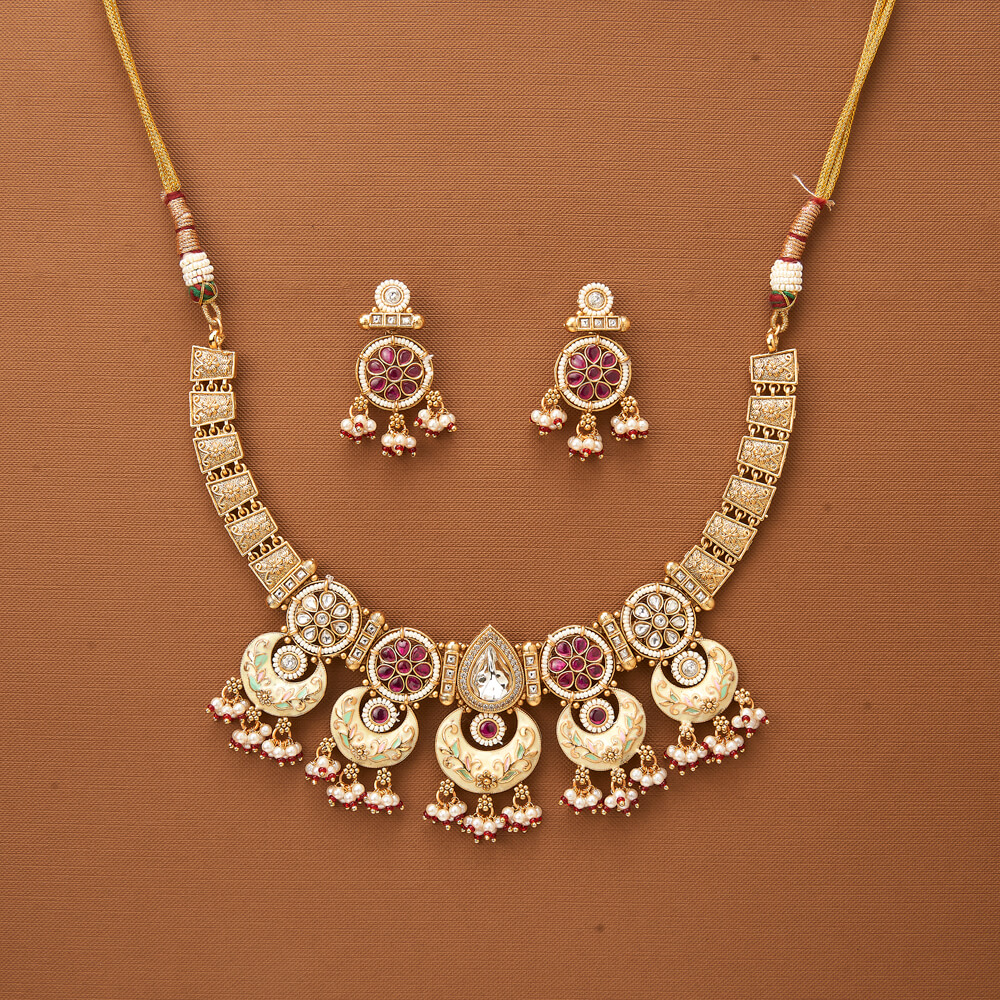 Home / Antique Necklace / antique meenakari necklace with matte gold plating