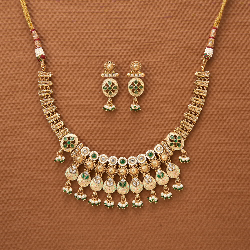 Home / Antique Necklace / antique meenakari necklace with matte gold plating