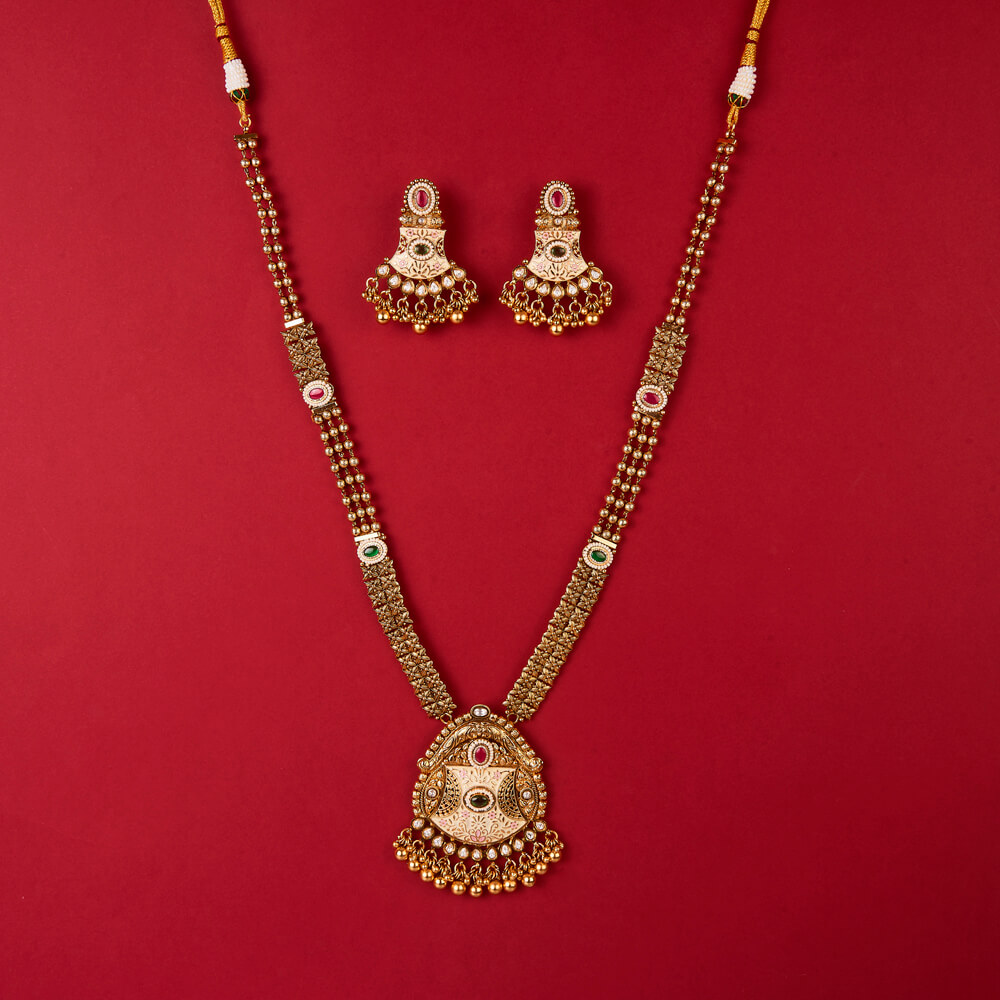 Home / Antique Necklace / antique meenakari necklace with matte gold plating