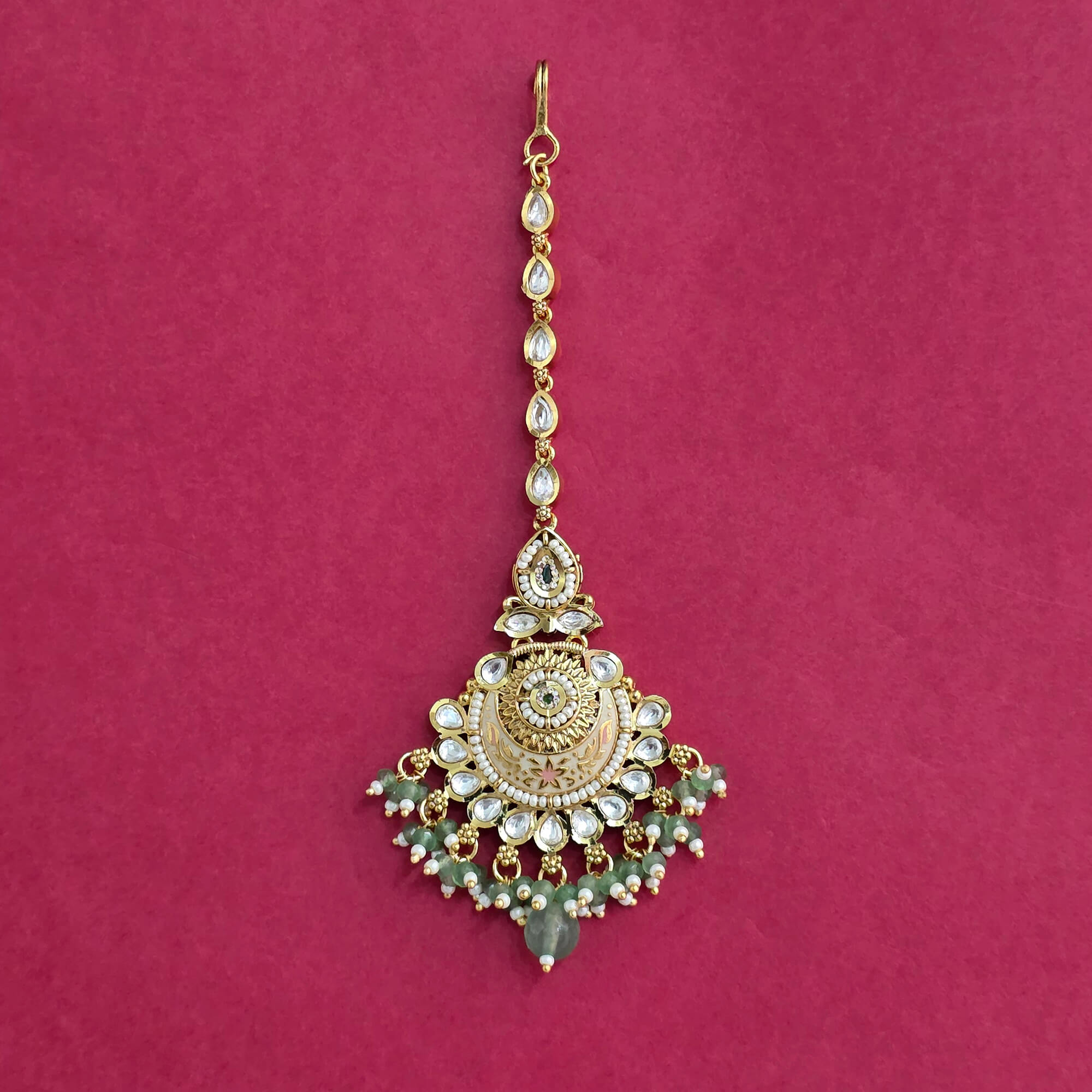 Kanhai Jewels offers an exclusive collection of finest quality crafted Fashion Jewellery in various colors. We make sure that our collection of Antique Meenakari Tikka With Gold Plating are beautiful, elegent & will surely galvanize you, because our products are unique, comfortable, fashion forward & very popular for the rich look. Base Metal of our product is Alloy, i.e Mixing of Copper & Brass. We pack all the products using quality packaging material to ensure safe and secure transportation.