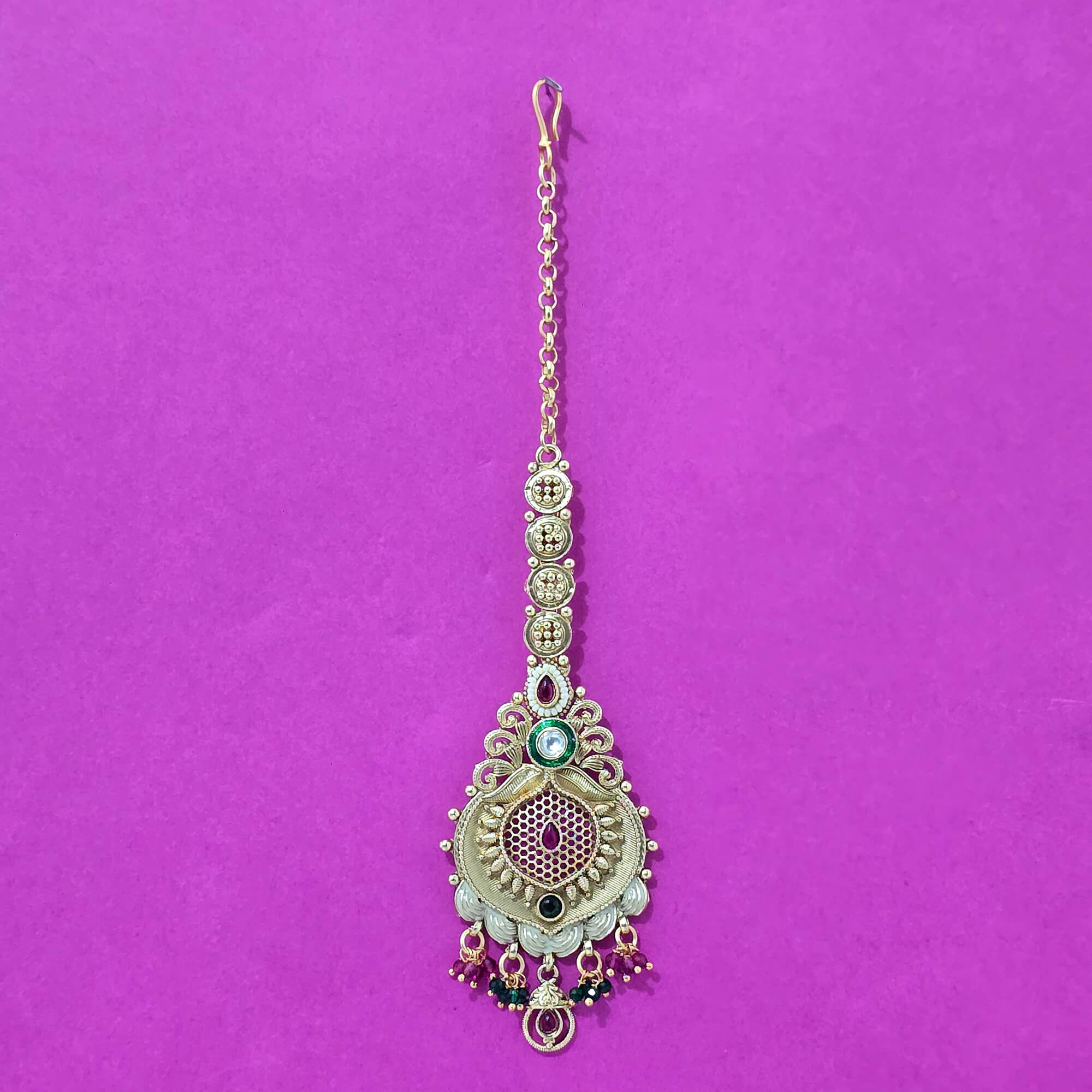 Kanhai Jewels offers an exclusive collection of finest quality crafted Fashion Jewellery in various colors. We make sure that our collection of Antique Meenakari Tikka With Matte Gold Plating are beautiful, elegent & will surely galvanize you, because our products are unique, comfortable, fashion forward & very popular for the rich look. Base Metal of our product is Alloy, i.e Mixing of Copper & Brass. We pack all the products using quality packaging material to ensure safe and secure transportation.