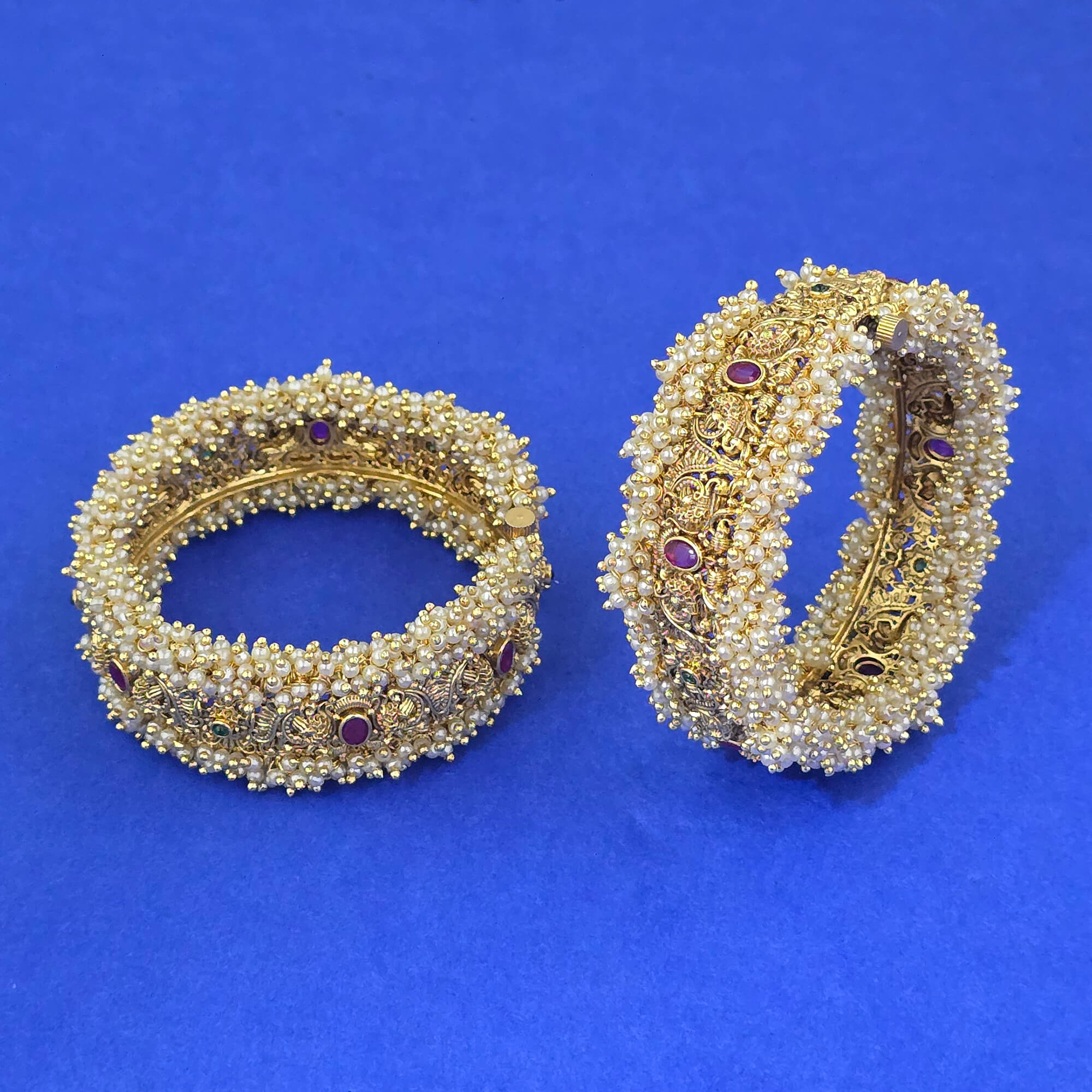 Kanhai Jewels offers an exclusive collection of finest quality crafted Fashion Jewellery in various colors. We make sure that our collection of Antique Moti Bangles With Matte Gold Plating are beautiful, elegent & will surely galvanize you, because our products are unique, comfortable, fashion forward & very popular for the rich look. Base Metal of our product is Alloy, i.e Mixing of Copper & Brass. We pack all the products using quality packaging material to ensure safe and secure transportation.