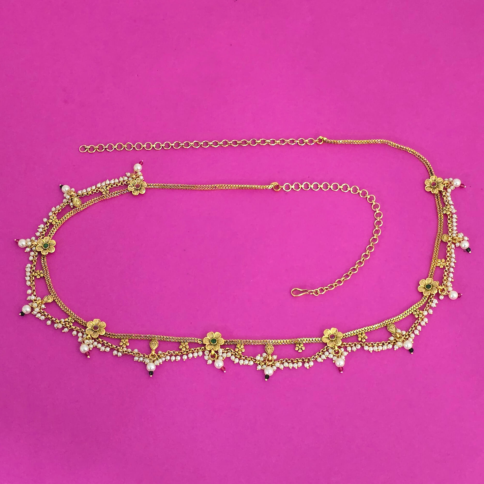 Kanhai Jewels offers an exclusive collection of finest quality crafted Fashion Jewellery in various colors. We make sure that our collection of Antique Moti Belt With Gold Plating are beautiful, elegent & will surely galvanize you, because our products are unique, comfortable, fashion forward & very popular for the rich look. Base Metal of our product is Alloy, i.e Mixing of Copper & Brass. We pack all the products using quality packaging material to ensure safe and secure transportation.