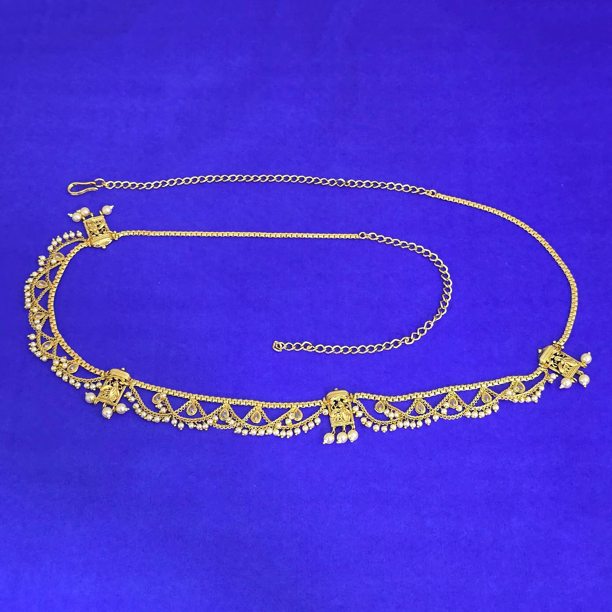 Kanhai Jewels offers an exclusive collection of finest quality crafted Fashion Jewellery in various colors. We make sure that our collection of Antique Moti Belt With Gold Plating are beautiful, elegent & will surely galvanize you, because our products are unique, comfortable, fashion forward & very popular for the rich look. Base Metal of our product is Alloy, i.e Mixing of Copper & Brass. We pack all the products using quality packaging material to ensure safe and secure transportation.
