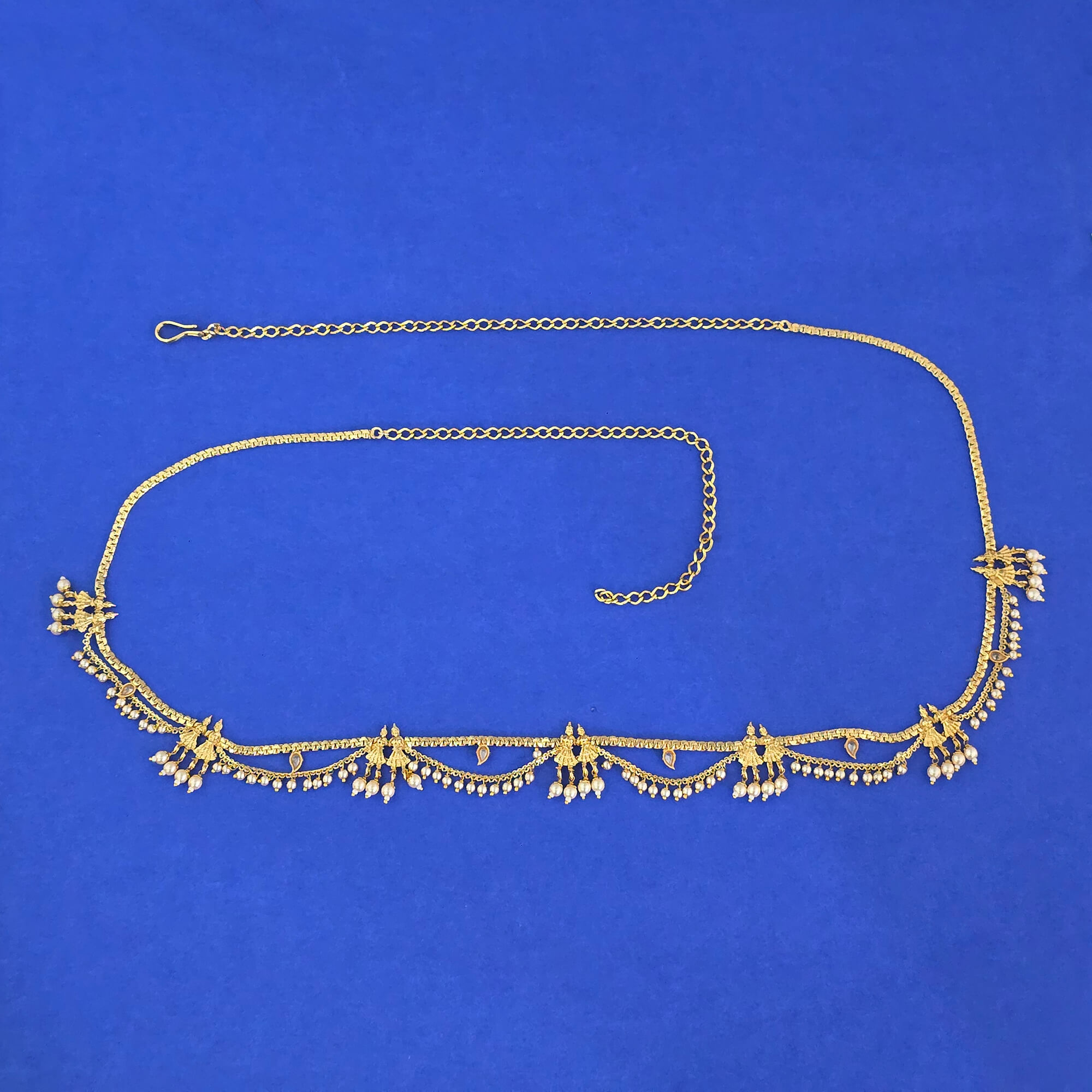 Kanhai Jewels offers an exclusive collection of finest quality crafted Fashion Jewellery in various colors. We make sure that our collection of Antique Moti Belt With Gold Plating are beautiful, elegent & will surely galvanize you, because our products are unique, comfortable, fashion forward & very popular for the rich look. Base Metal of our product is Alloy, i.e Mixing of Copper & Brass. We pack all the products using quality packaging material to ensure safe and secure transportation.