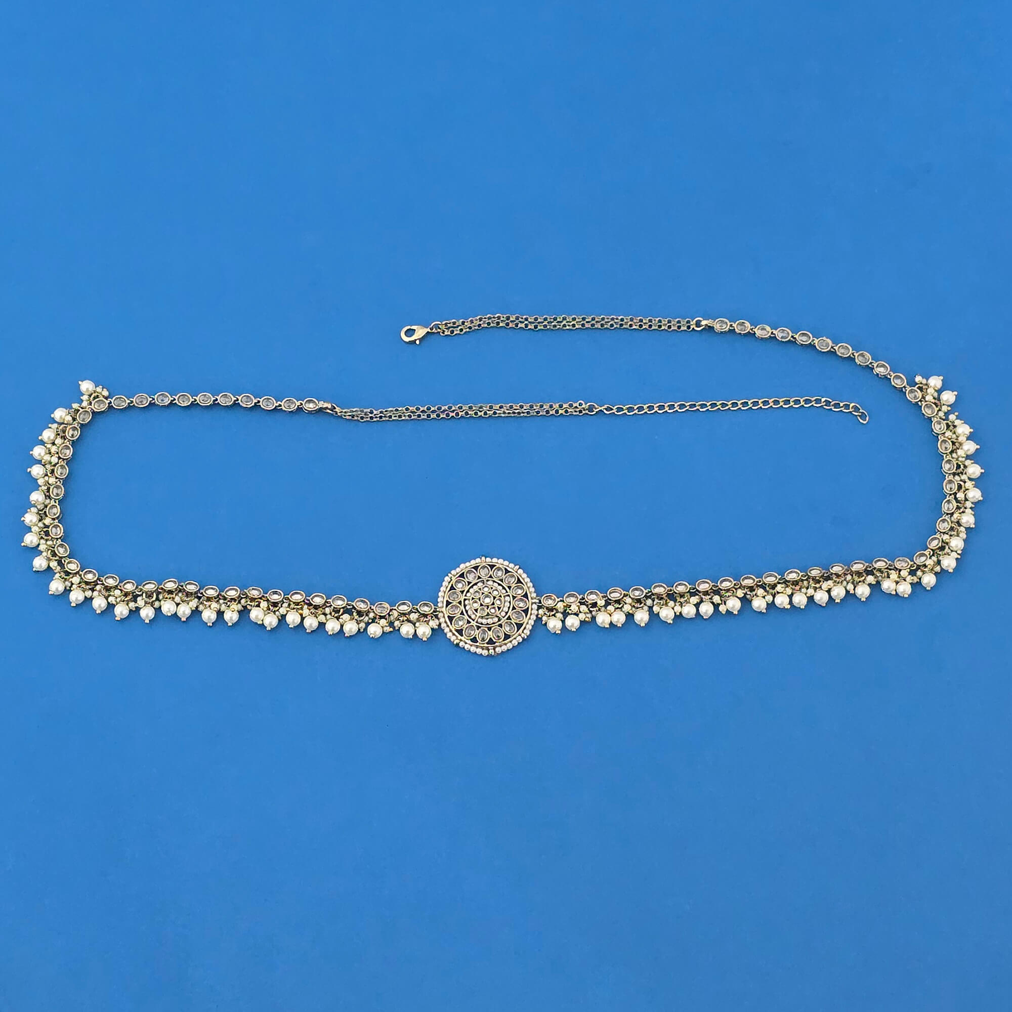 Kanhai Jewels offers an exclusive collection of finest quality crafted Fashion Jewellery in various colors. We make sure that our collection of Antique Moti Belt With Mehndi Plating are beautiful, elegent & will surely galvanize you, because our products are unique, comfortable, fashion forward & very popular for the rich look. Base Metal of our product is Alloy, i.e Mixing of Copper & Brass. We pack all the products using quality packaging material to ensure safe and secure transportation.