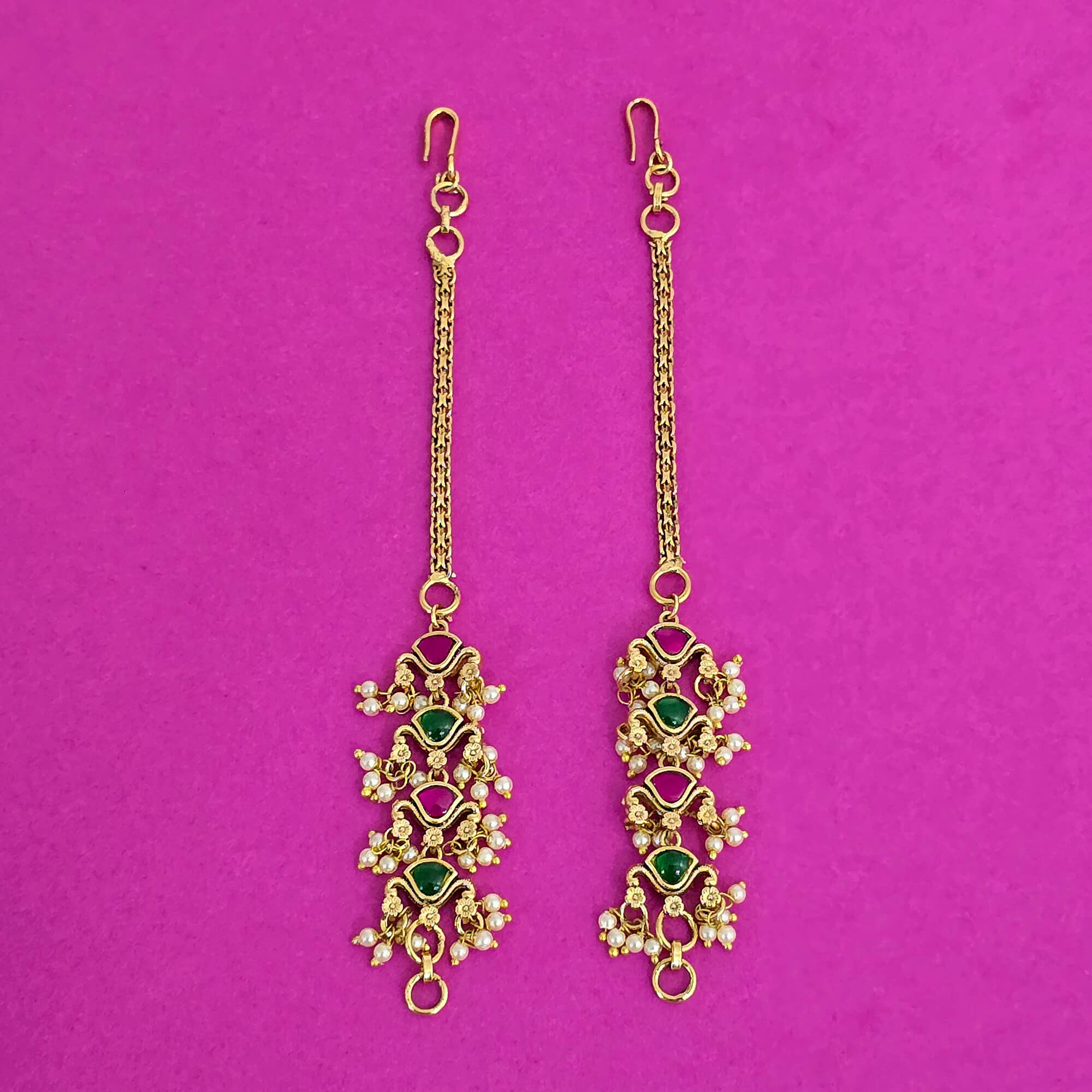 Kanhai Jewels offers an exclusive collection of finest quality crafted Fashion Jewellery in various colors. We make sure that our collection of Antique Moti Ear Chain With Gold Plating are beautiful, elegent & will surely galvanize you, because our products are unique, comfortable, fashion forward & very popular for the rich look. Base Metal of our product is Alloy, i.e Mixing of Copper & Brass. We pack all the products using quality packaging material to ensure safe and secure transportation.
