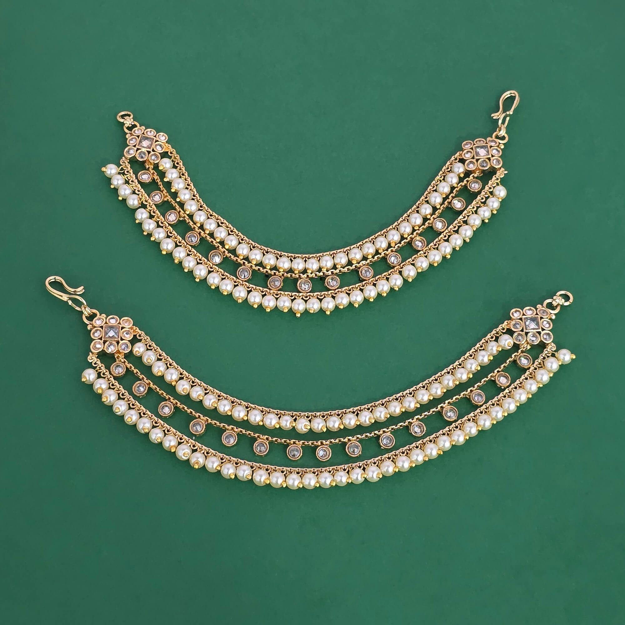 231232 Antique Moti Ear Chain With Gold Plating
