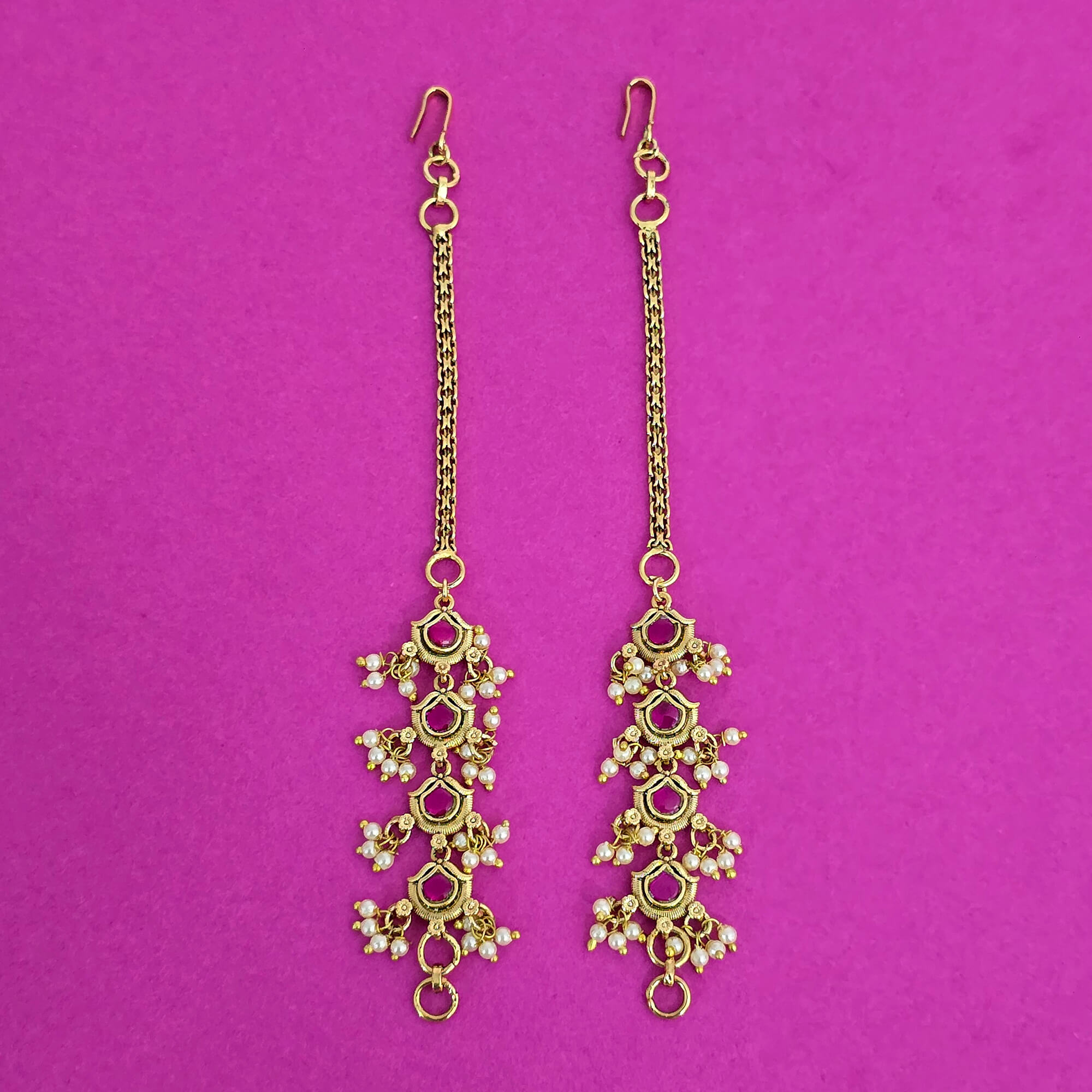 Kanhai Jewels offers an exclusive collection of finest quality crafted Fashion Jewellery in various colors. We make sure that our collection of Antique Moti Ear Chain With Matte Gold Plating are beautiful, elegent & will surely galvanize you, because our products are unique, comfortable, fashion forward & very popular for the rich look. Base Metal of our product is Alloy, i.e Mixing of Copper & Brass. We pack all the products using quality packaging material to ensure safe and secure transportation.
