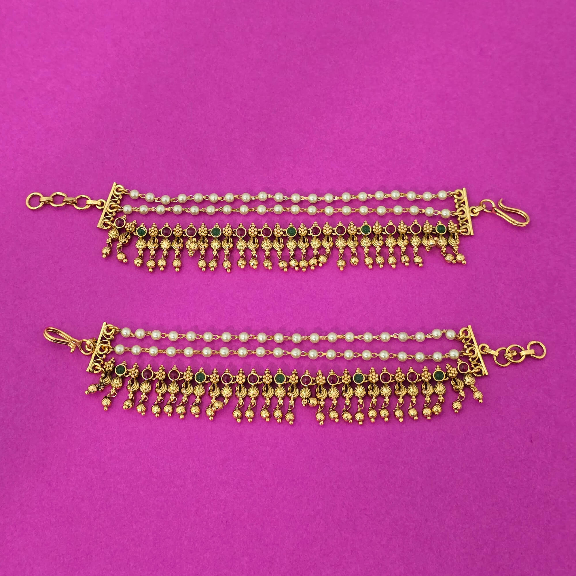 Kanhai Jewels offers an exclusive collection of finest quality crafted Fashion Jewellery in various colors. We make sure that our collection of Antique Moti Ear Chain With Matte Gold Plating are beautiful, elegent & will surely galvanize you, because our products are unique, comfortable, fashion forward & very popular for the rich look. Base Metal of our product is Alloy, i.e Mixing of Copper & Brass. We pack all the products using quality packaging material to ensure safe and secure transportation.