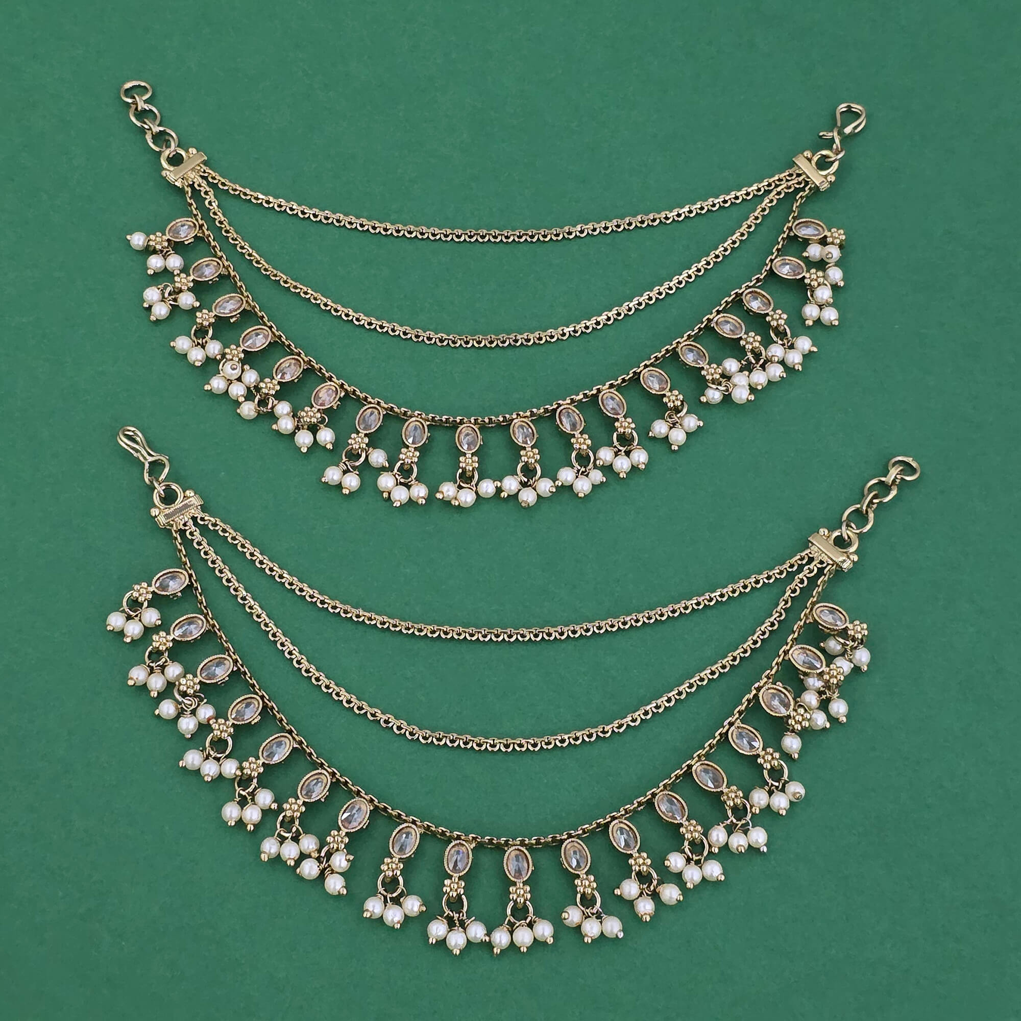 230573 Antique Moti Ear Chain With Mehndi Plating